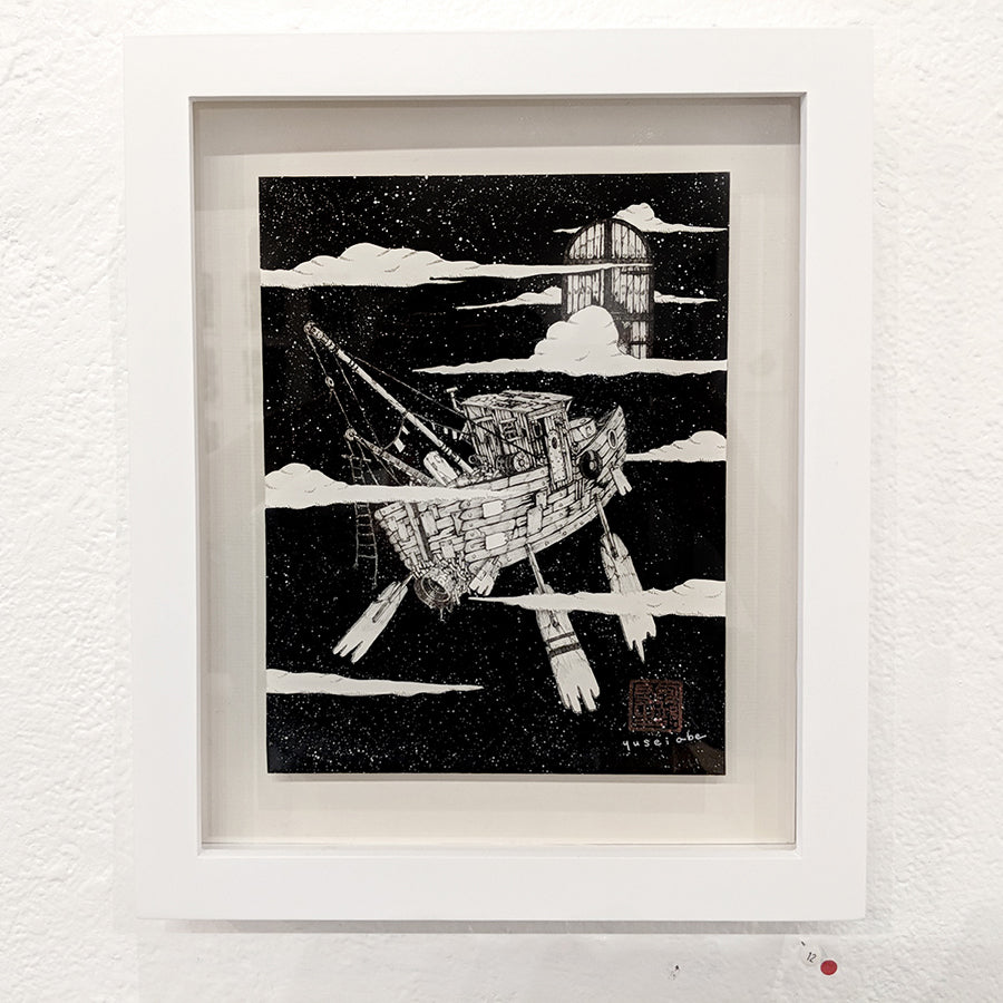 Drawing measures 5.75 x 7.95 inches floating within frame.