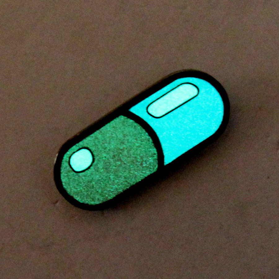 Giant Robot - Capsule / Red and blue pill / Enamel Pin (Glow-in-the-Dark)