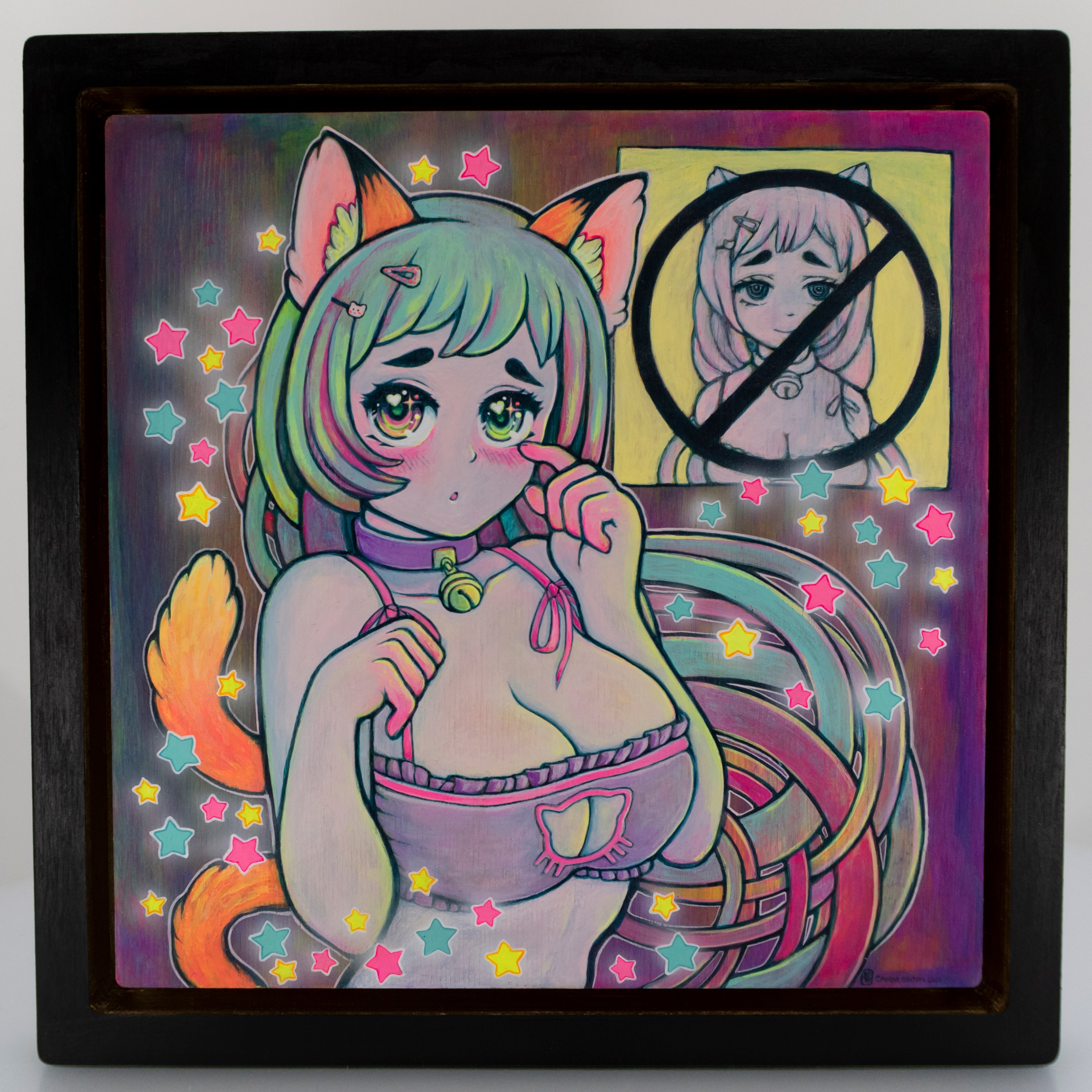 Acrylic and gouache on wood panel.