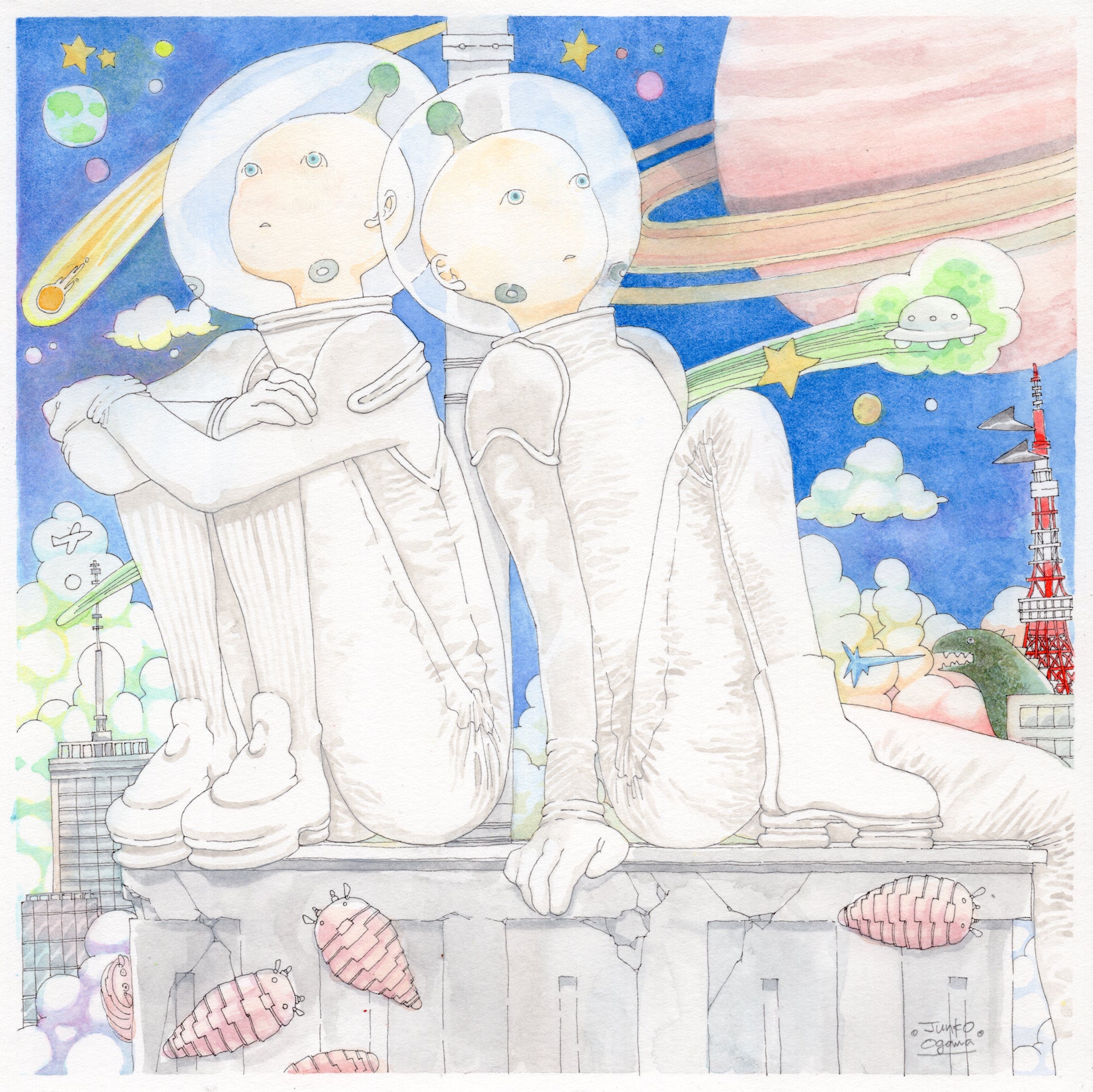 Pen and watercolor on paper.