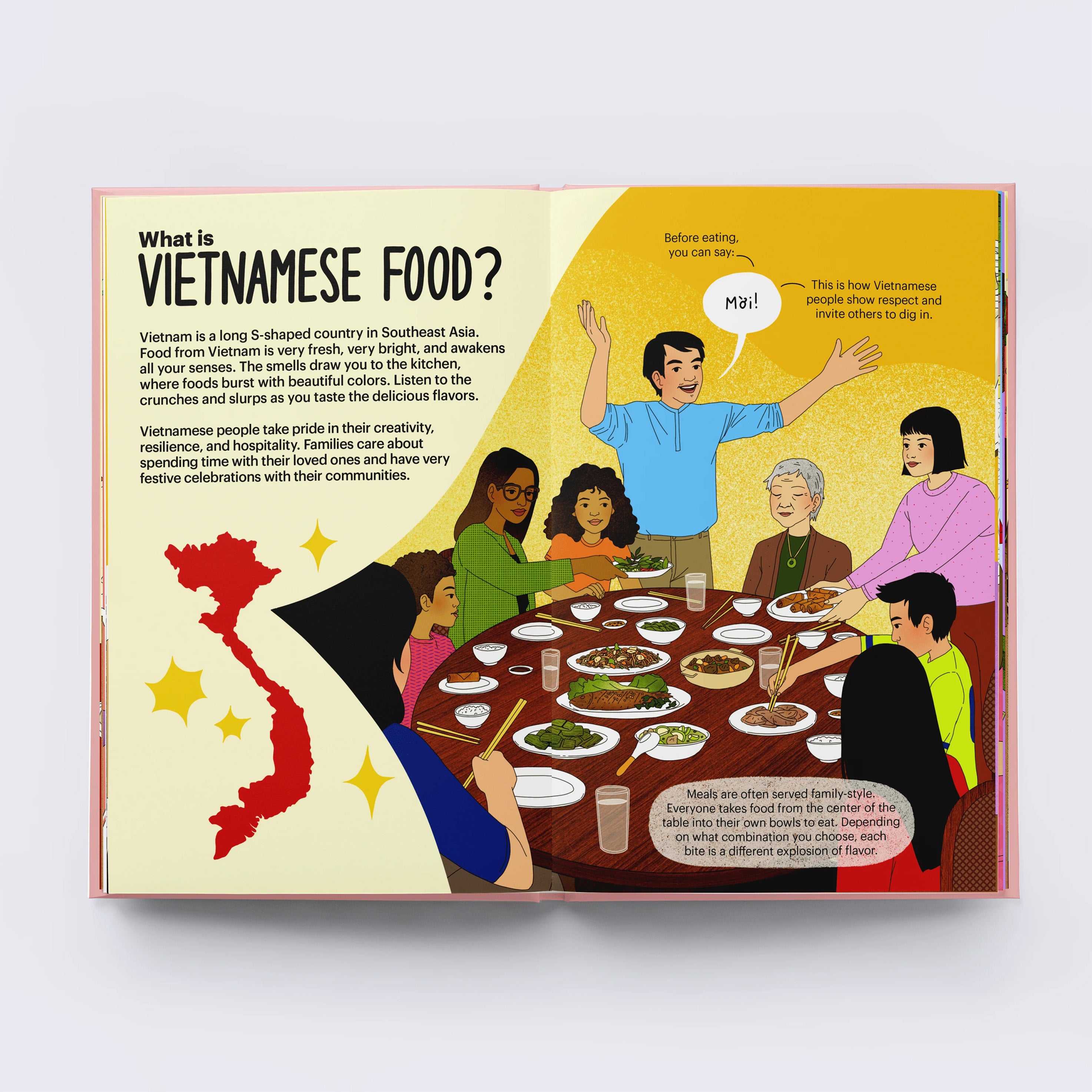 Explore the delicious world of Vietnamese food! A Very Asian Guide to Vietnamese Food introduces little readers to classic and modern Vietnamese dishes and provides fun facts about the foods and culture of Vietnam. Learn why fish sauce is so important to Vietnamese cuisine or what makes bánh khọt so crunchy and irresistible. Author, Cat Nguyen, invites you to discover the fresh and bright flavors of Vietnam, where food is not just something you eat but something you share. Illustrated by Kim Thai Nguyen each page is a colorful exploration of a dish that is sure to make every reader hungry.