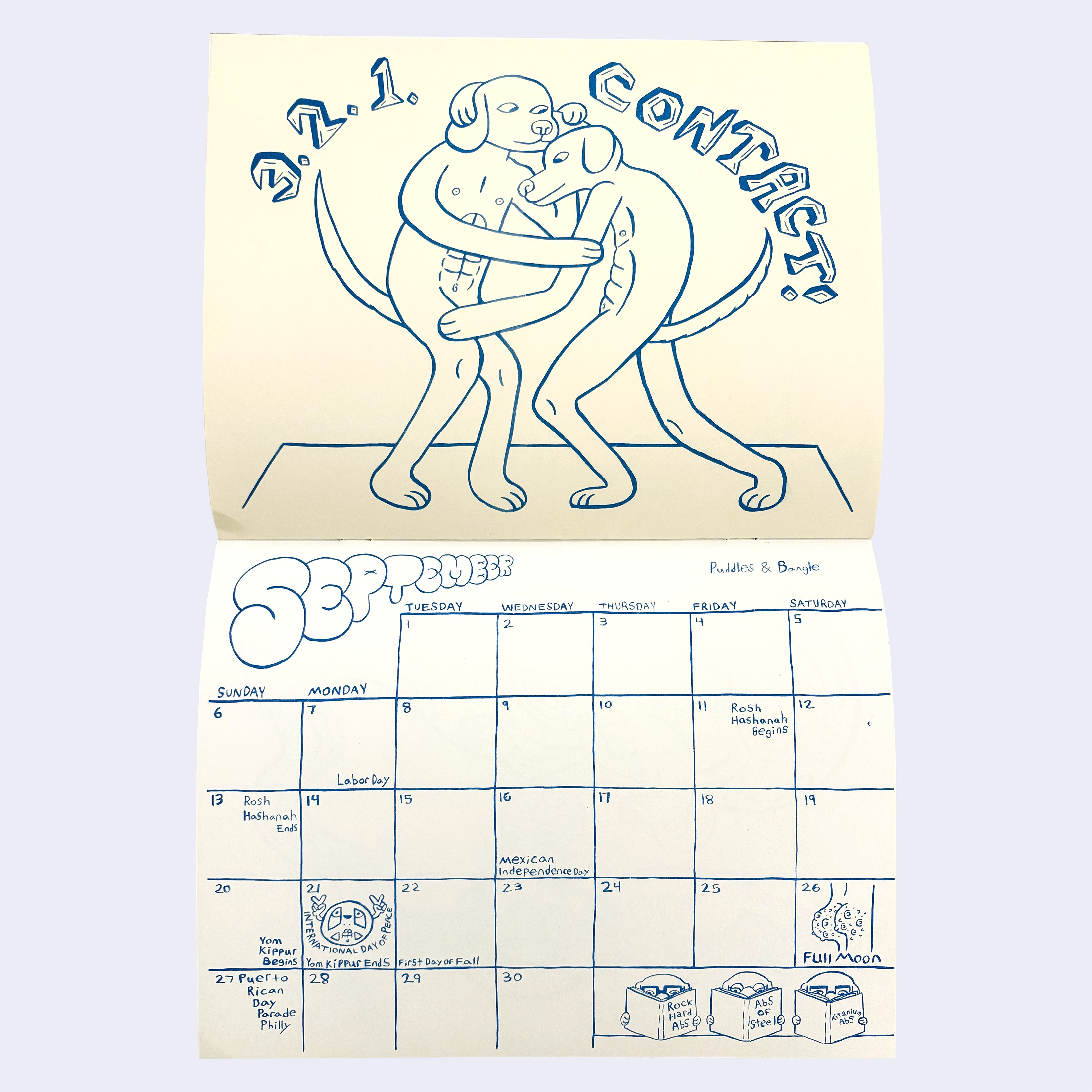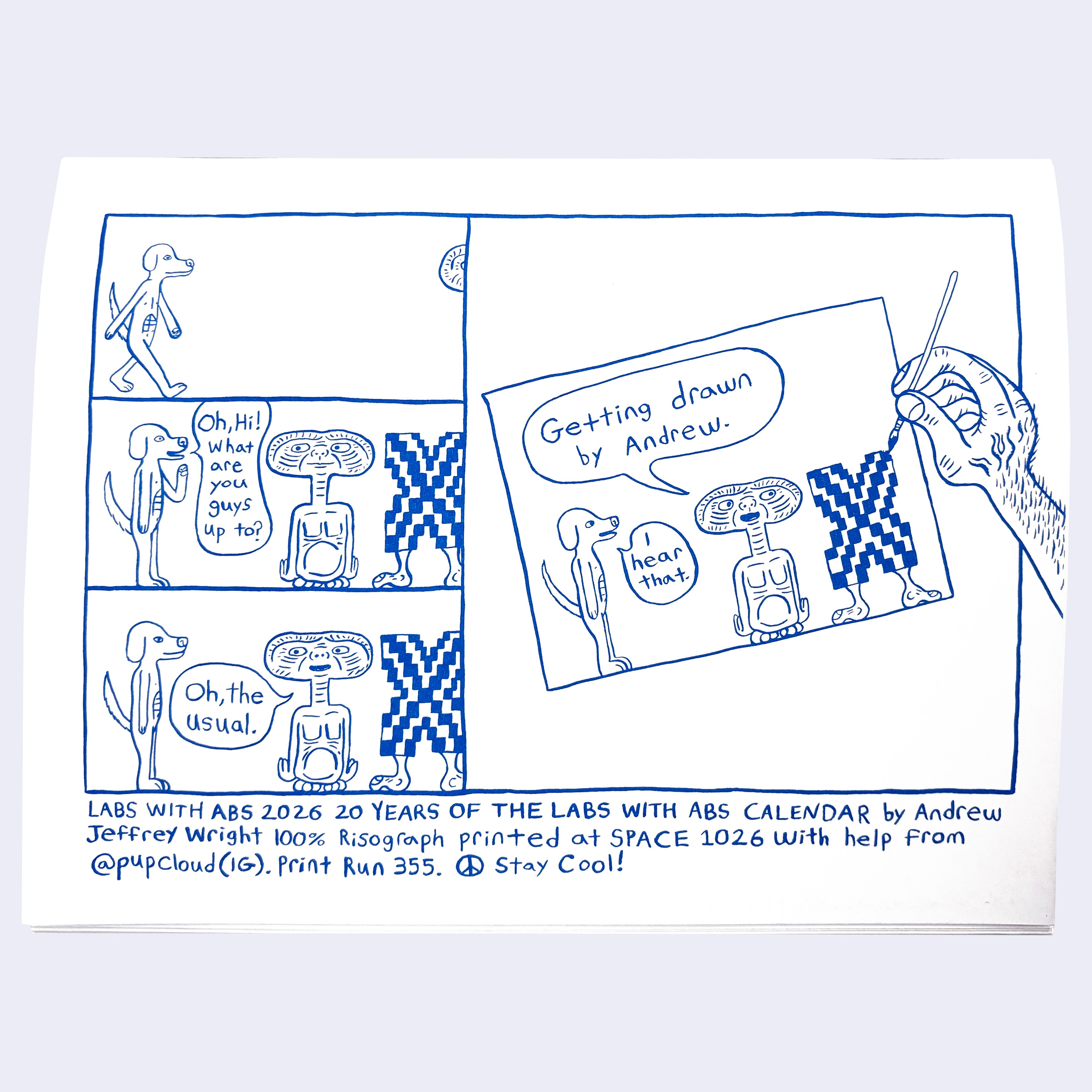 Andrew Jeffery Wright is an amazing printmaker with the best Calendar in the country. Brand new Labs With Abs brings all new scenarios of ripped rovers imitating life within art.