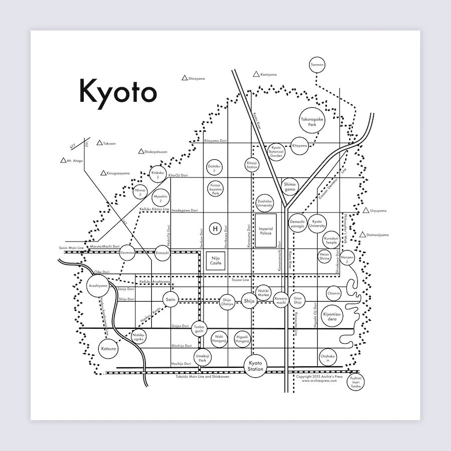 Archie's Press - Circle City Map Letterpress Print (Kyoto)