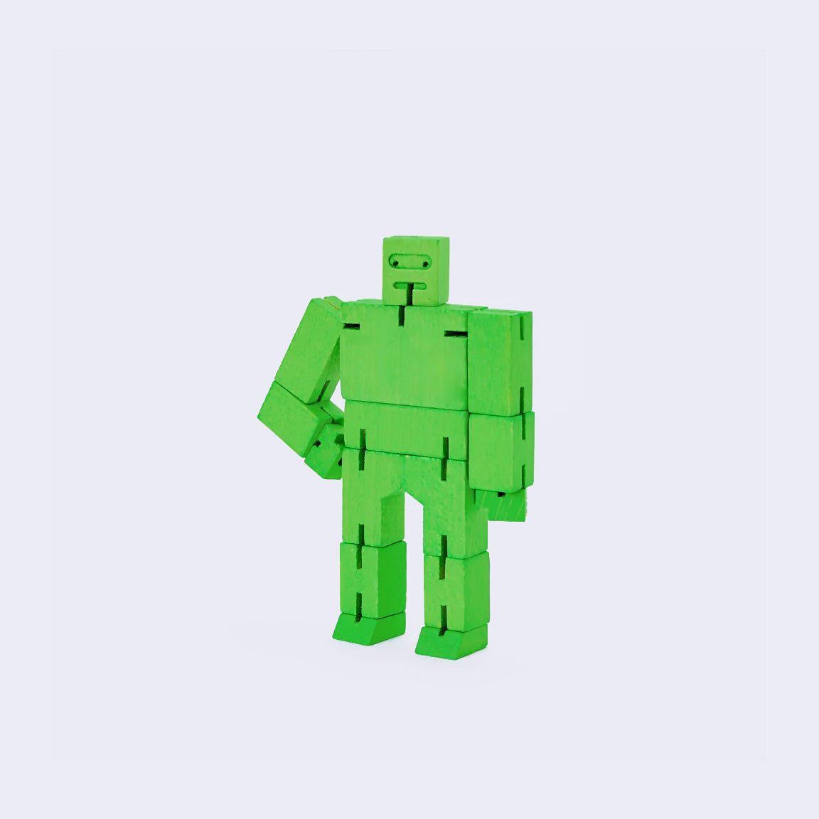 Wooden Cubebots! From a cube to a bot. Play with the limbs to create any pose you can imagine. Elastic-band muscles and wooden parts will allow for years of fun! One per package.