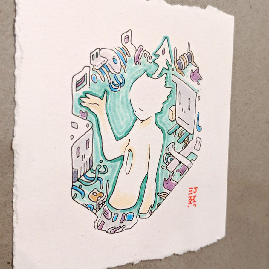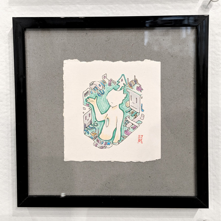 Copic marker on 2.75 x 2.75 inch paper, framed.