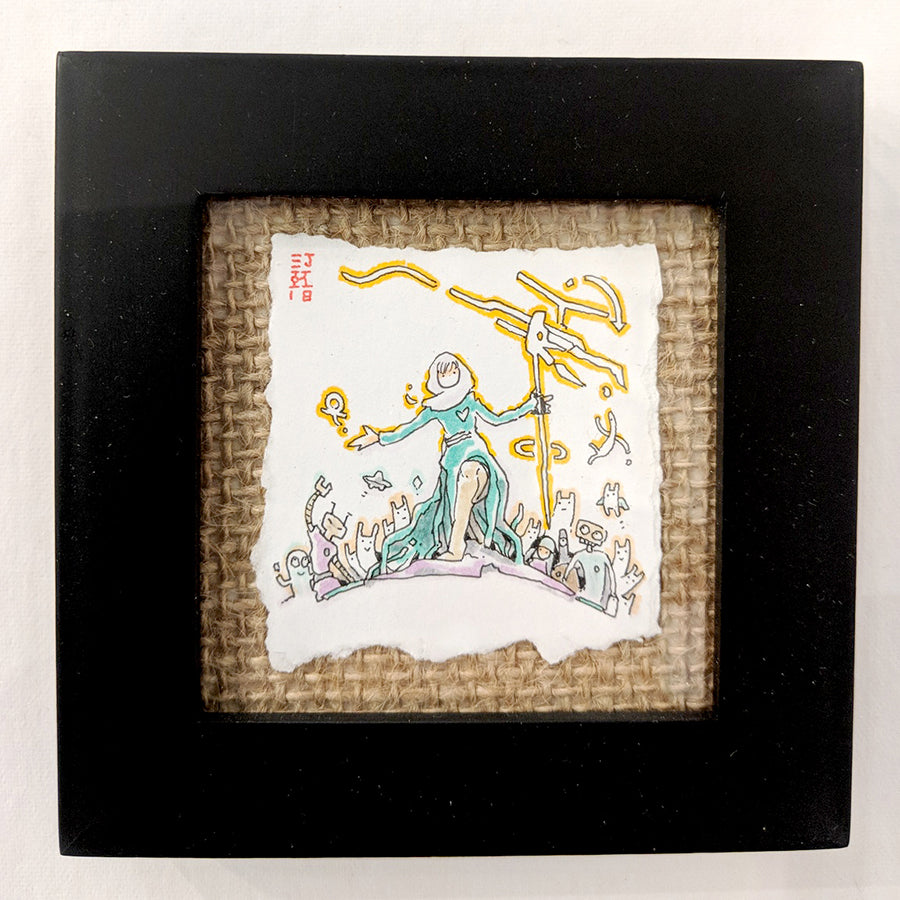 Copic marker on 2 x 2 inch paper, framed.