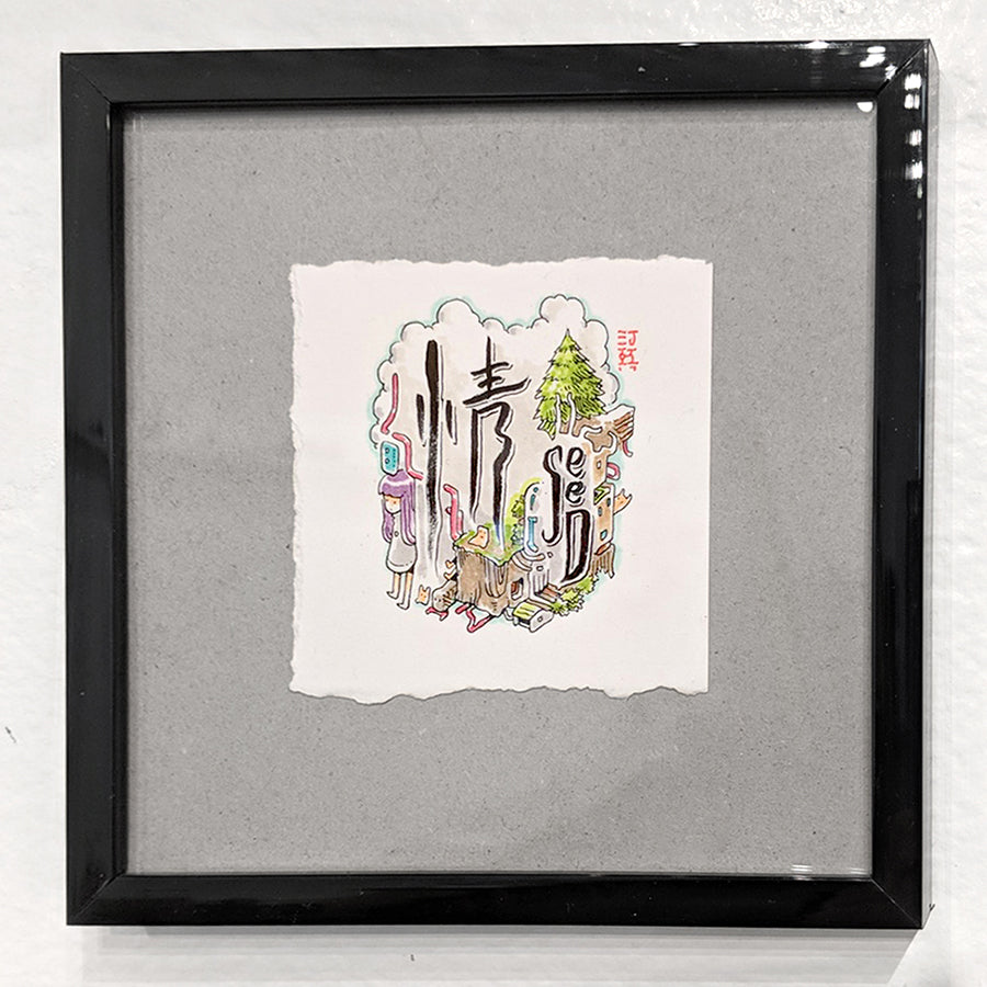 Copic marker on 2.75 x 2.75 inch paper, framed.