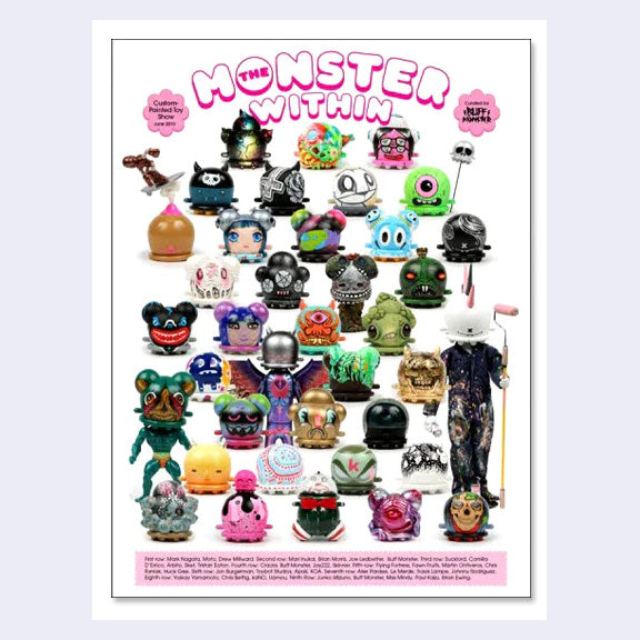Created for Buff Monster - The Monster Within show at Giant Robot! This poster features all 37 pieces that were customized by various popular artists for the show!