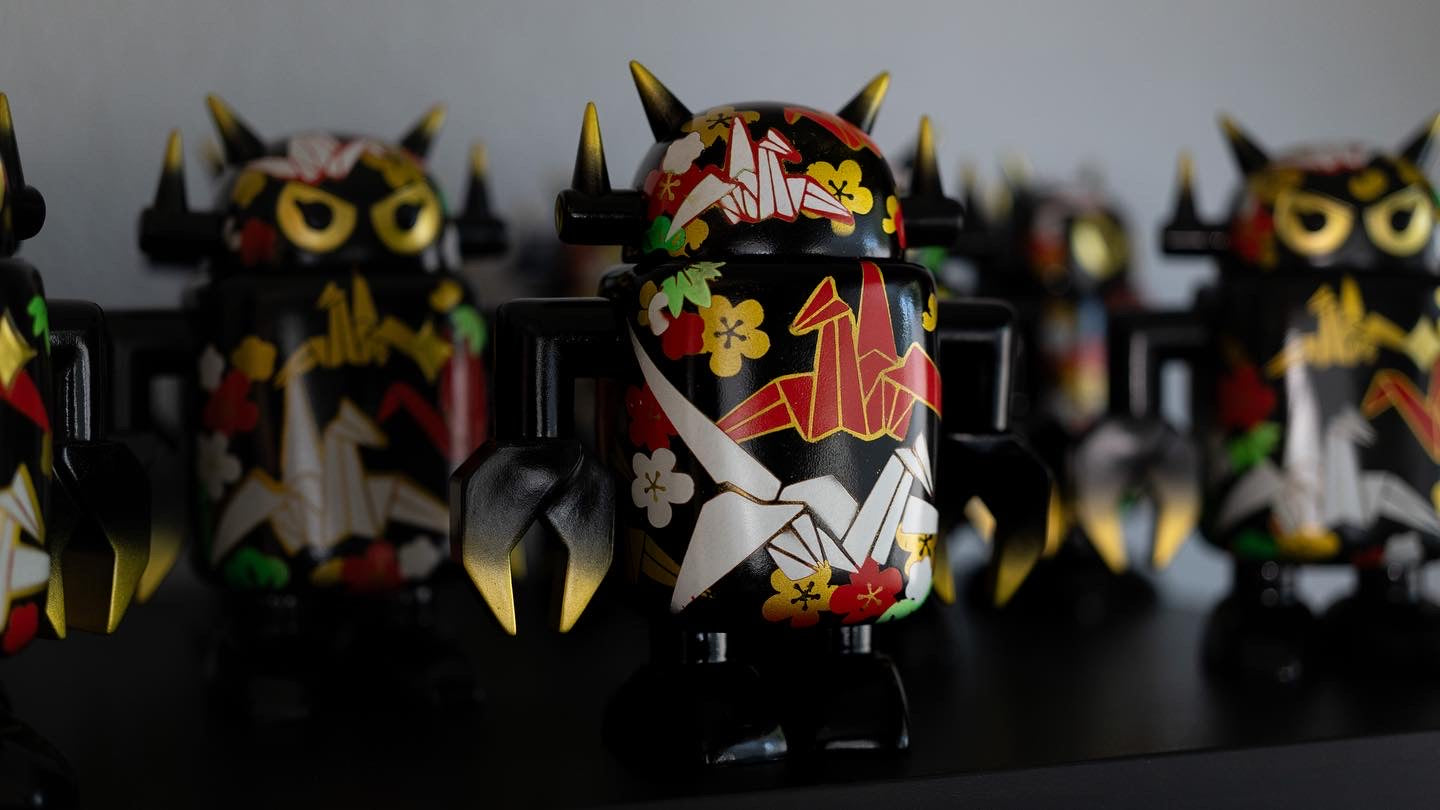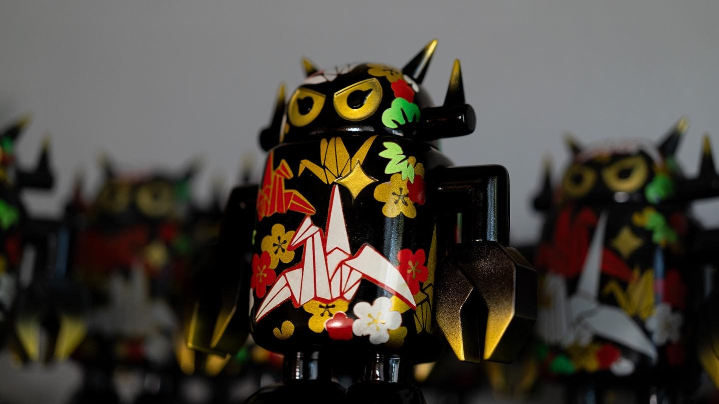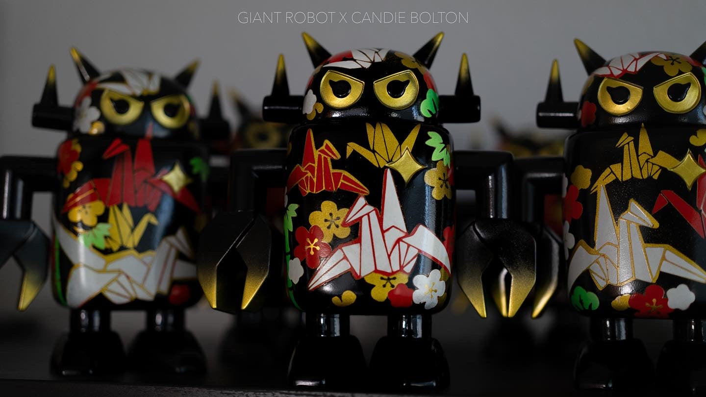 Custom painted Big Boss Robot figure by Candie Bolton, airbrushed vinyl paint and acrylics.