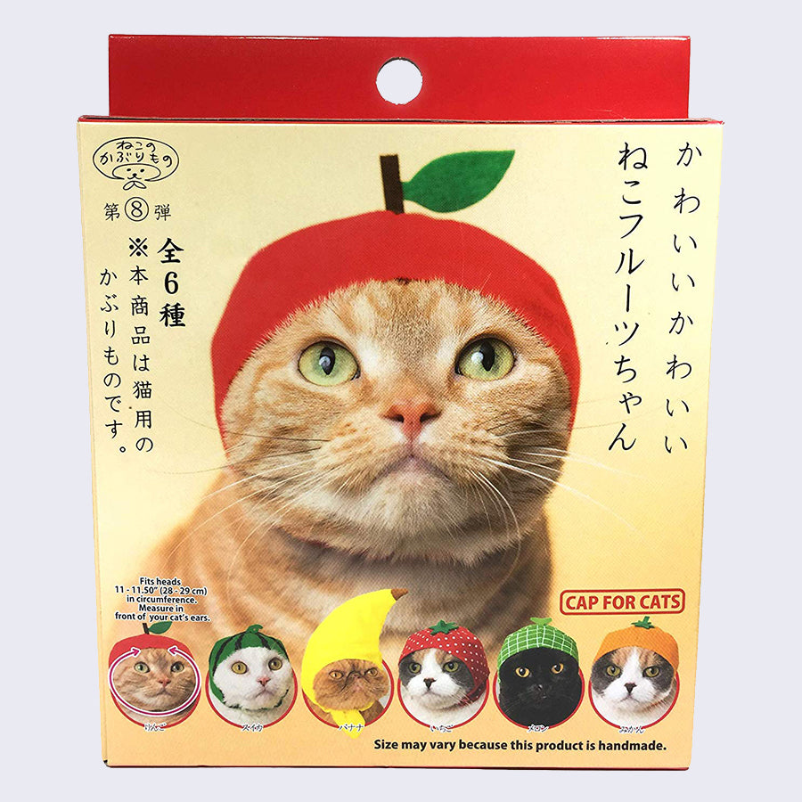 Collect all 6 of these adorable soft fruit themed hats for your bevy of cats! The possibilities include a red apple, watermelon, banana, strawberry, lime and orange!