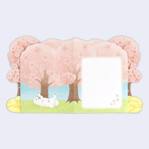 This card is a gift in and of itself! This beautiful pair of dogs posed in front of a blooming sakura tree comes flat and can be popped up to transform into a stunning visual gift, with place on the back to write a message.