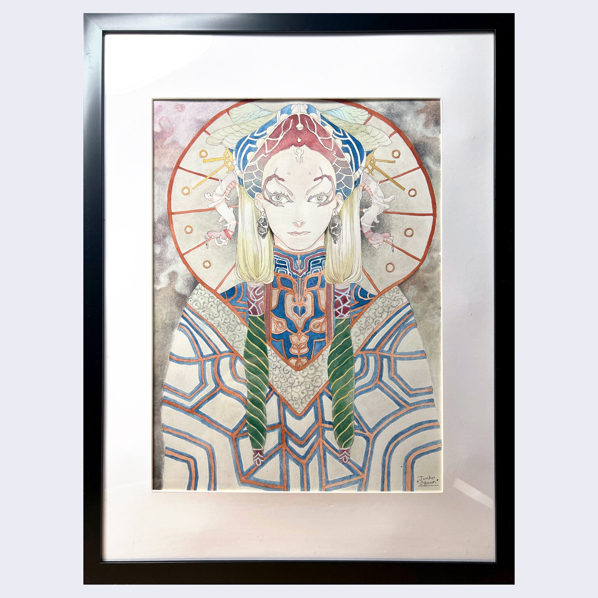 Artwork measures 9 x 12 inches, framed work measures 12 x 16 inches.