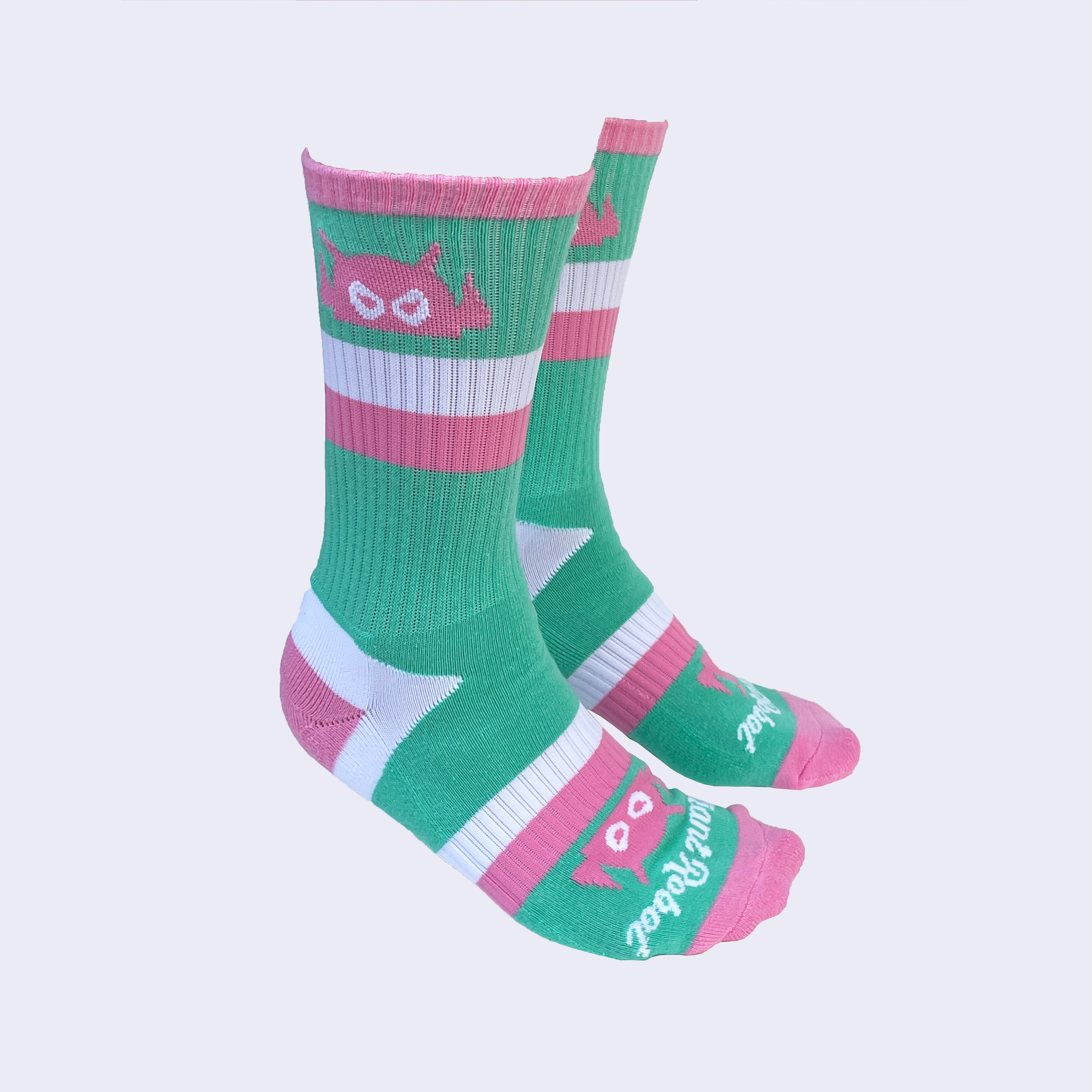 Giant Robot - Big Boss Robot Socks - Mint, Pink and White Stripes