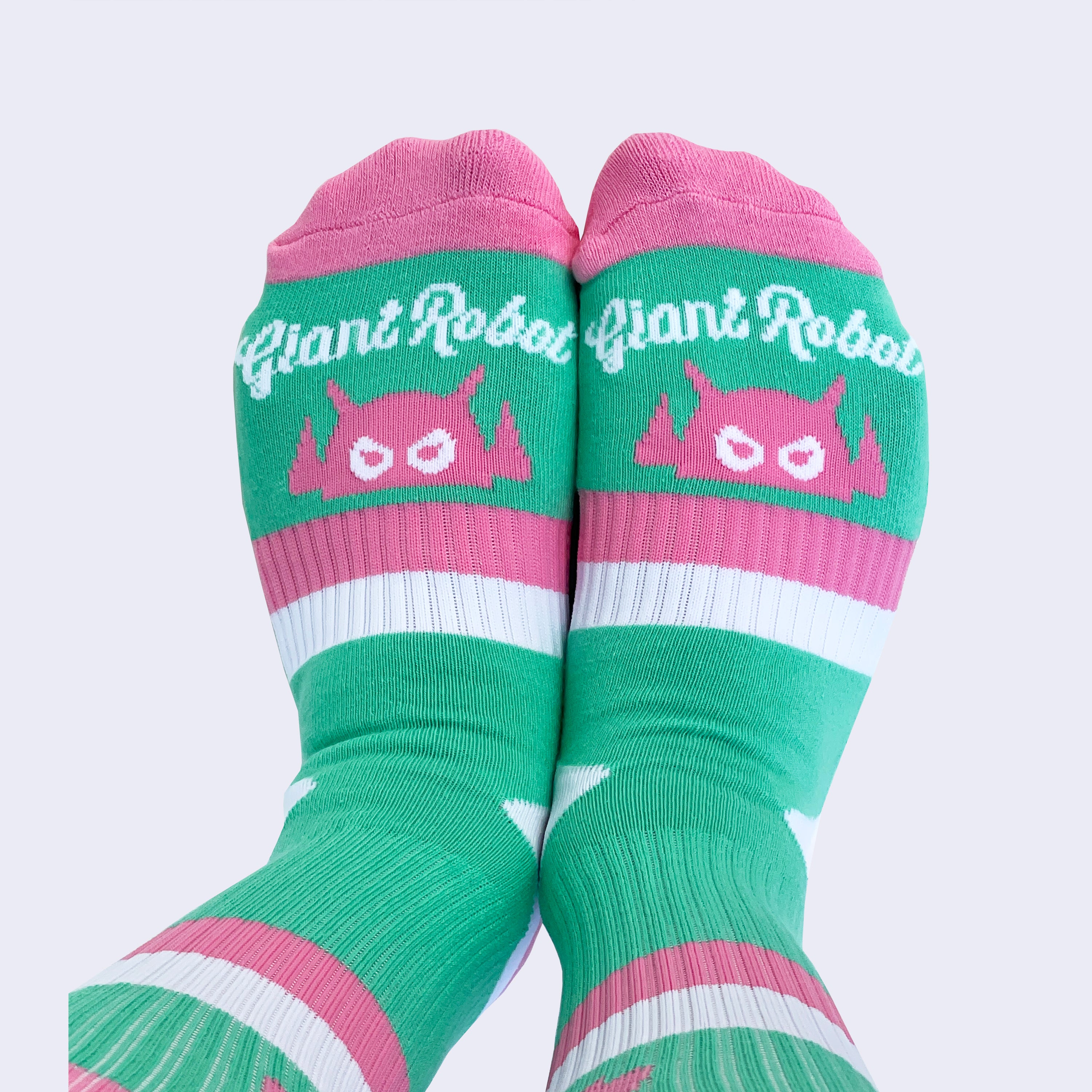 Giant Robot socks with cool colorways! Fit enough for a robot's feet but made for yours. Athletic style sock that is as comfortable as it is stylish. Represent since 1994.