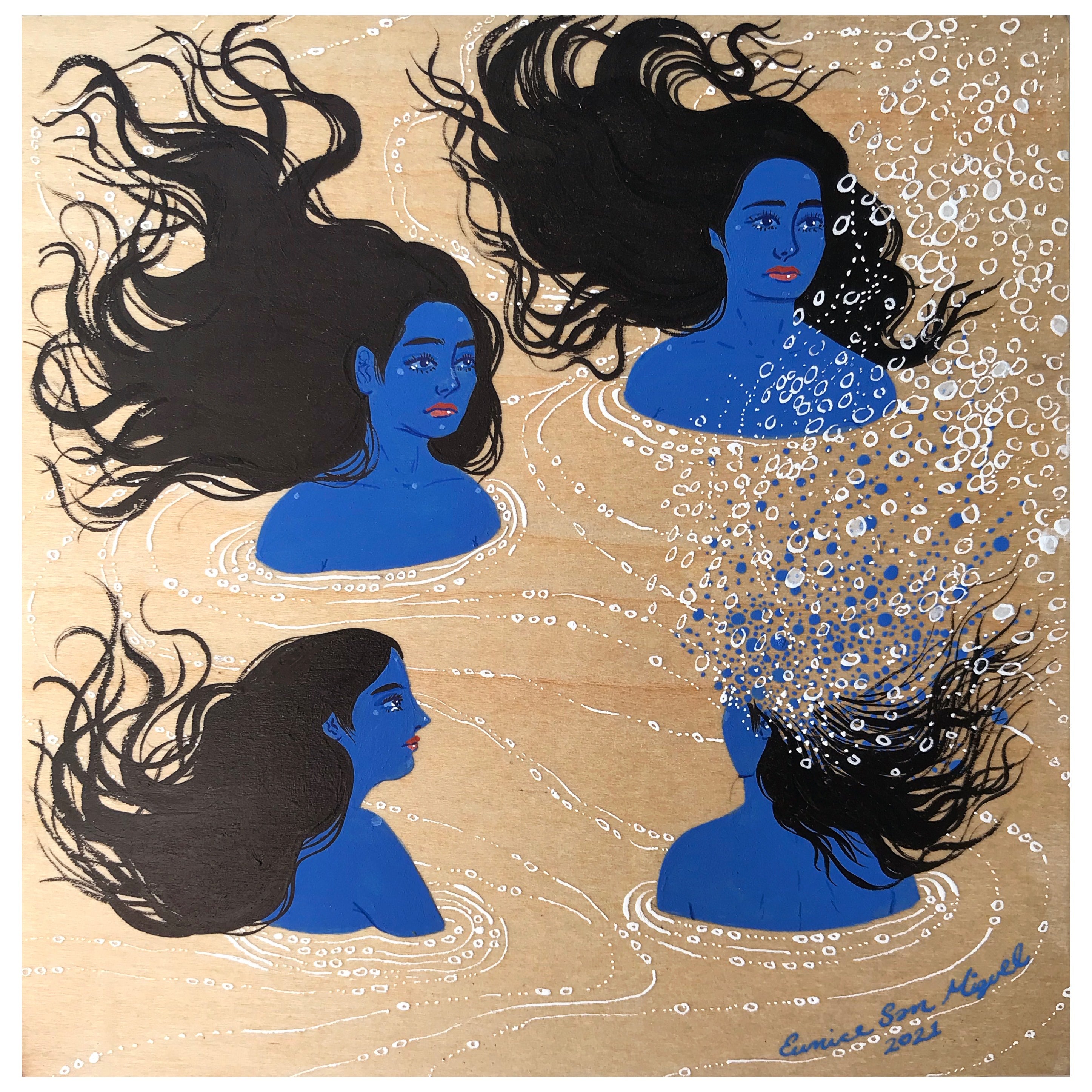 "This painting depicts the moment where the little mermaid transitions into sea foam after refusing to kill the prince to save herself. The only witnesses are her sisters."