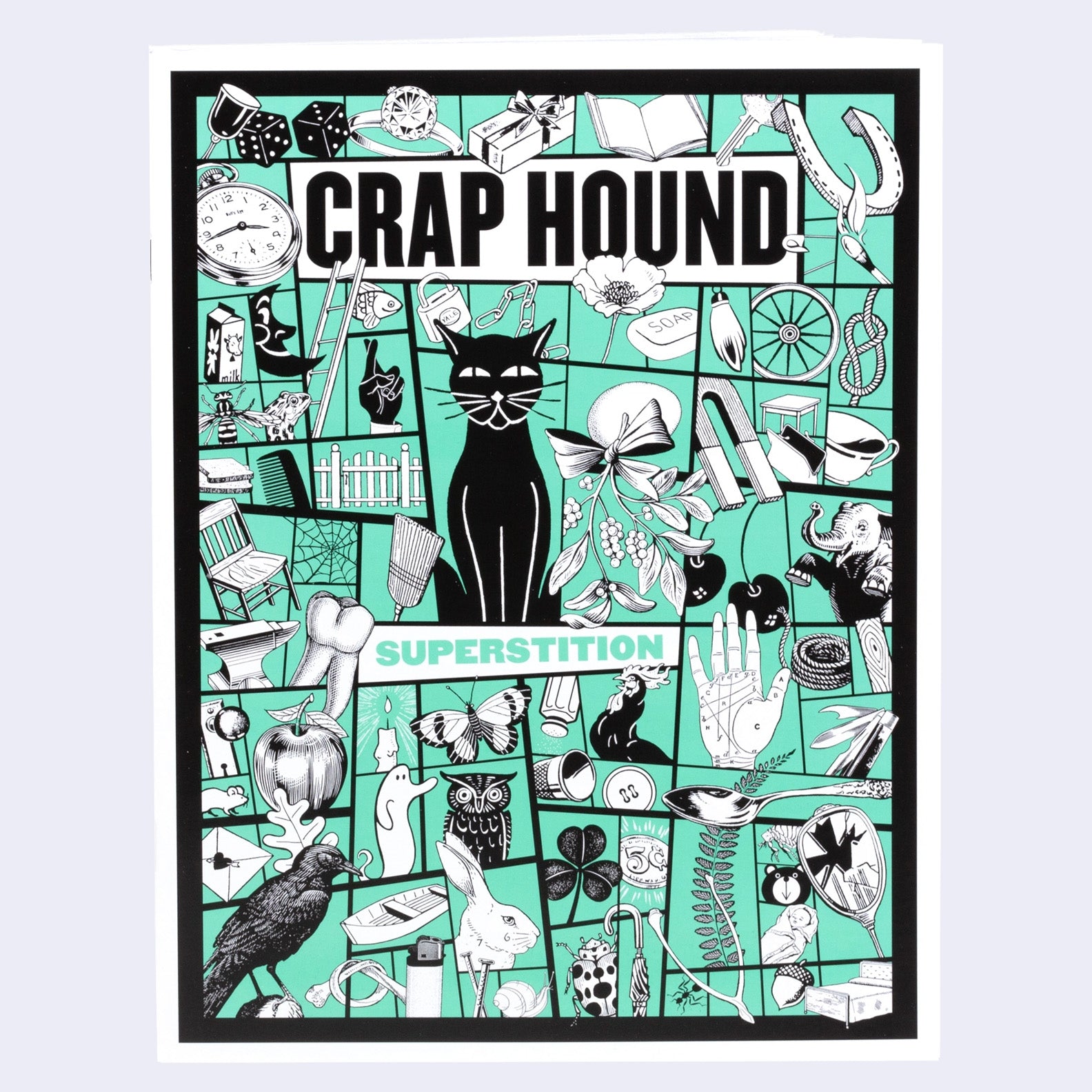 Through sheer volume of artfully arranged iconography, Crap Hound provides a visual survey of dozens of popular and lesser known superstitions.