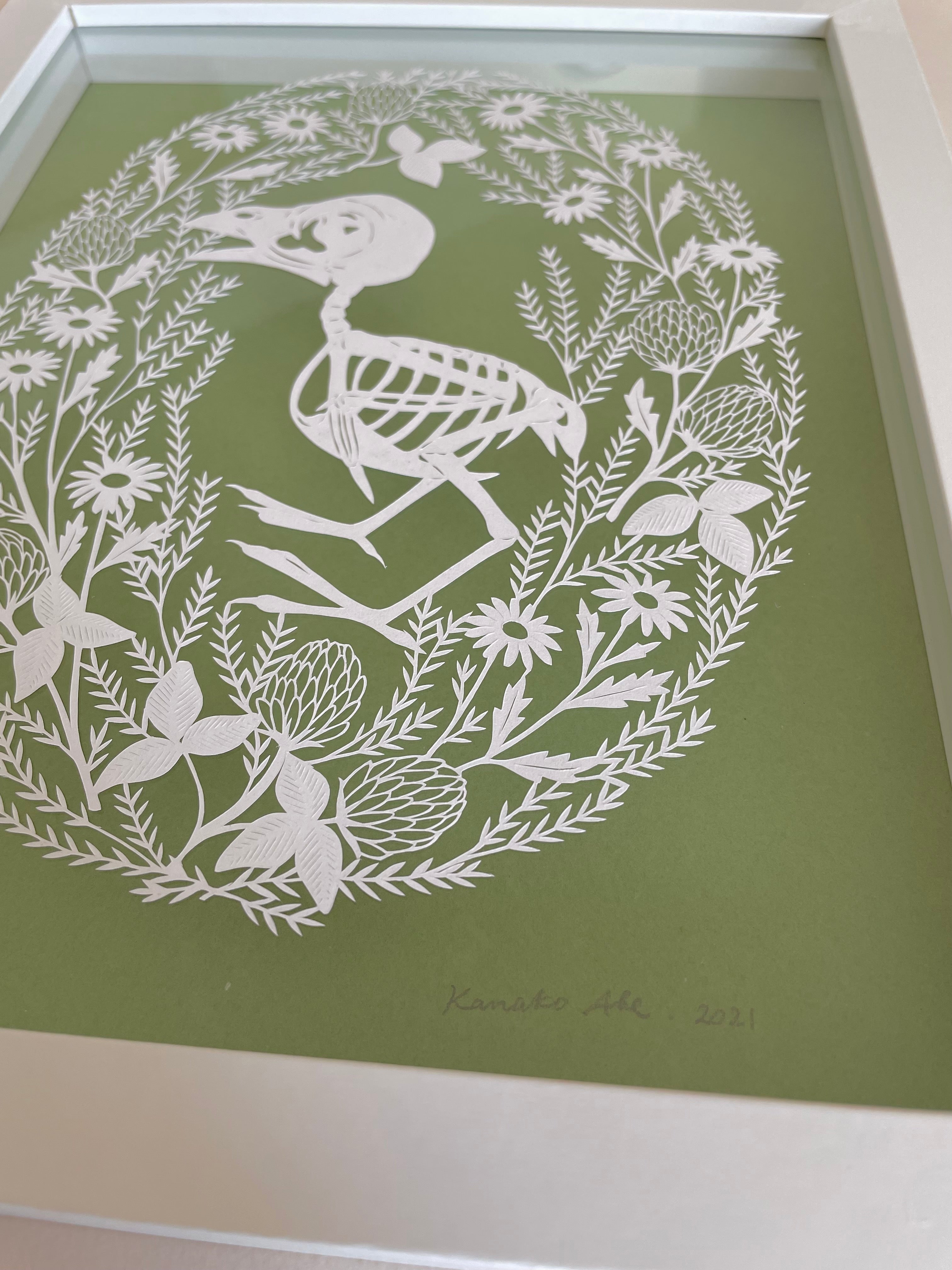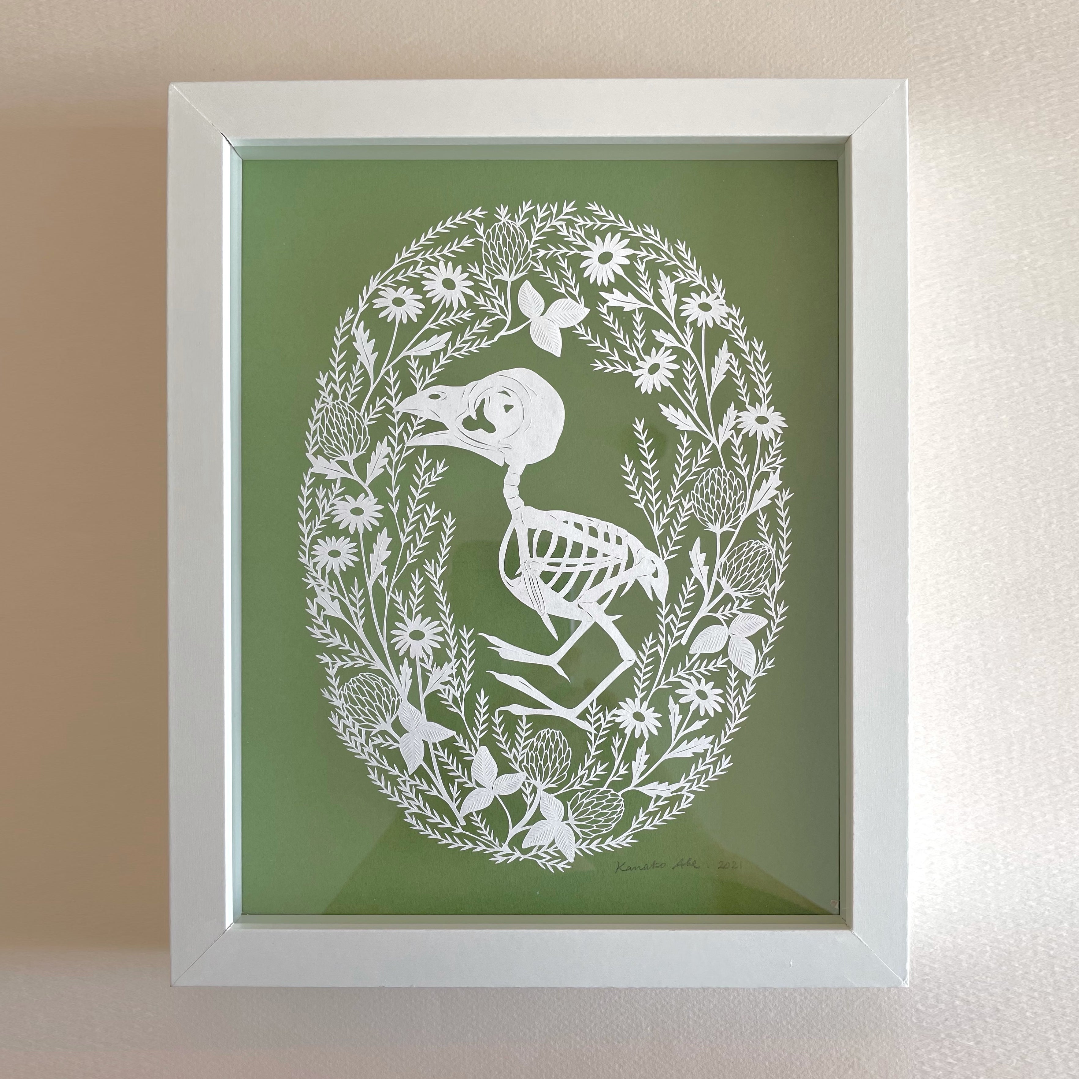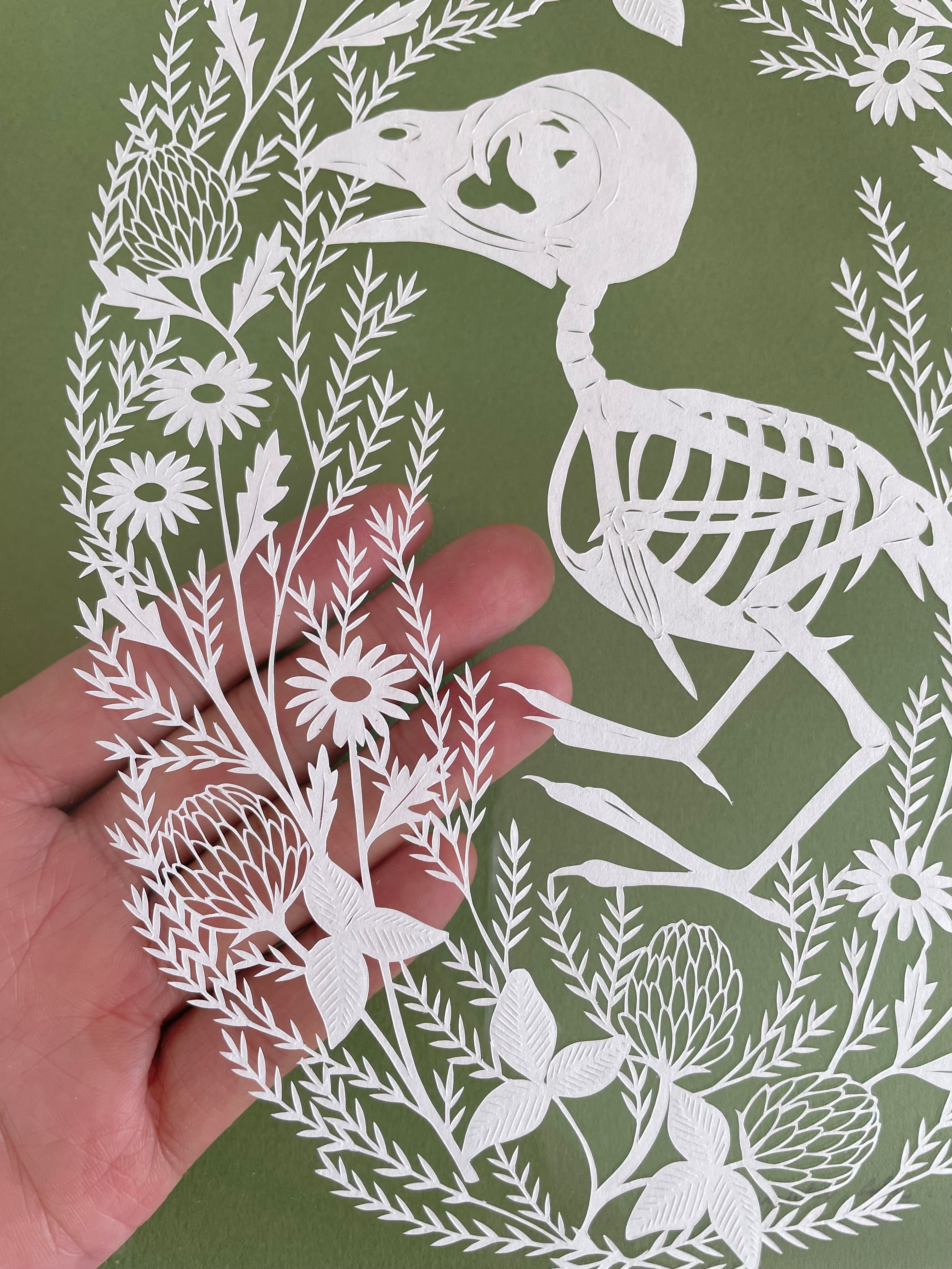Hand cut paper in shadowbox frame.