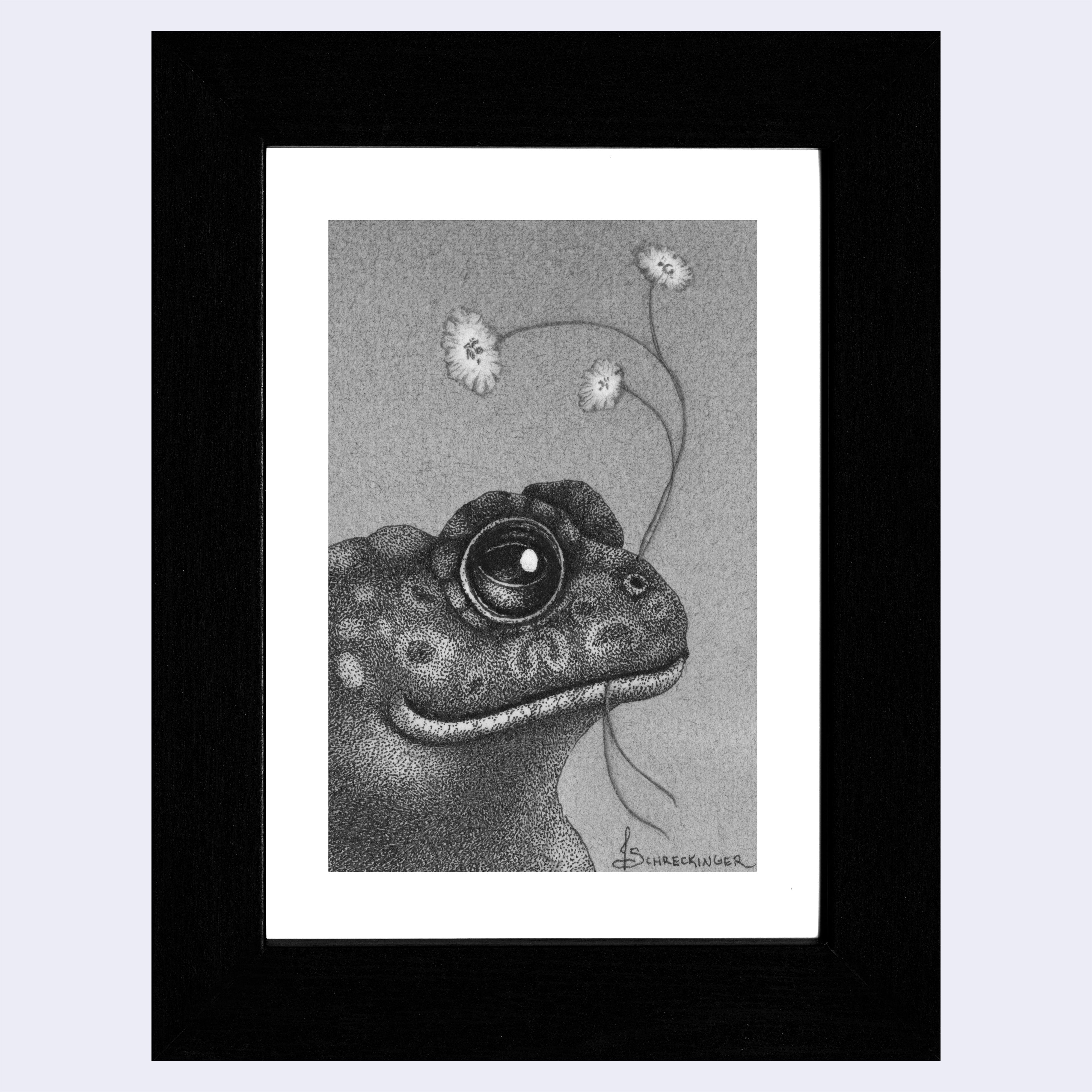 Artwork measures 2 x 3 inches, framed to 3.5 x 4.5 inches.
