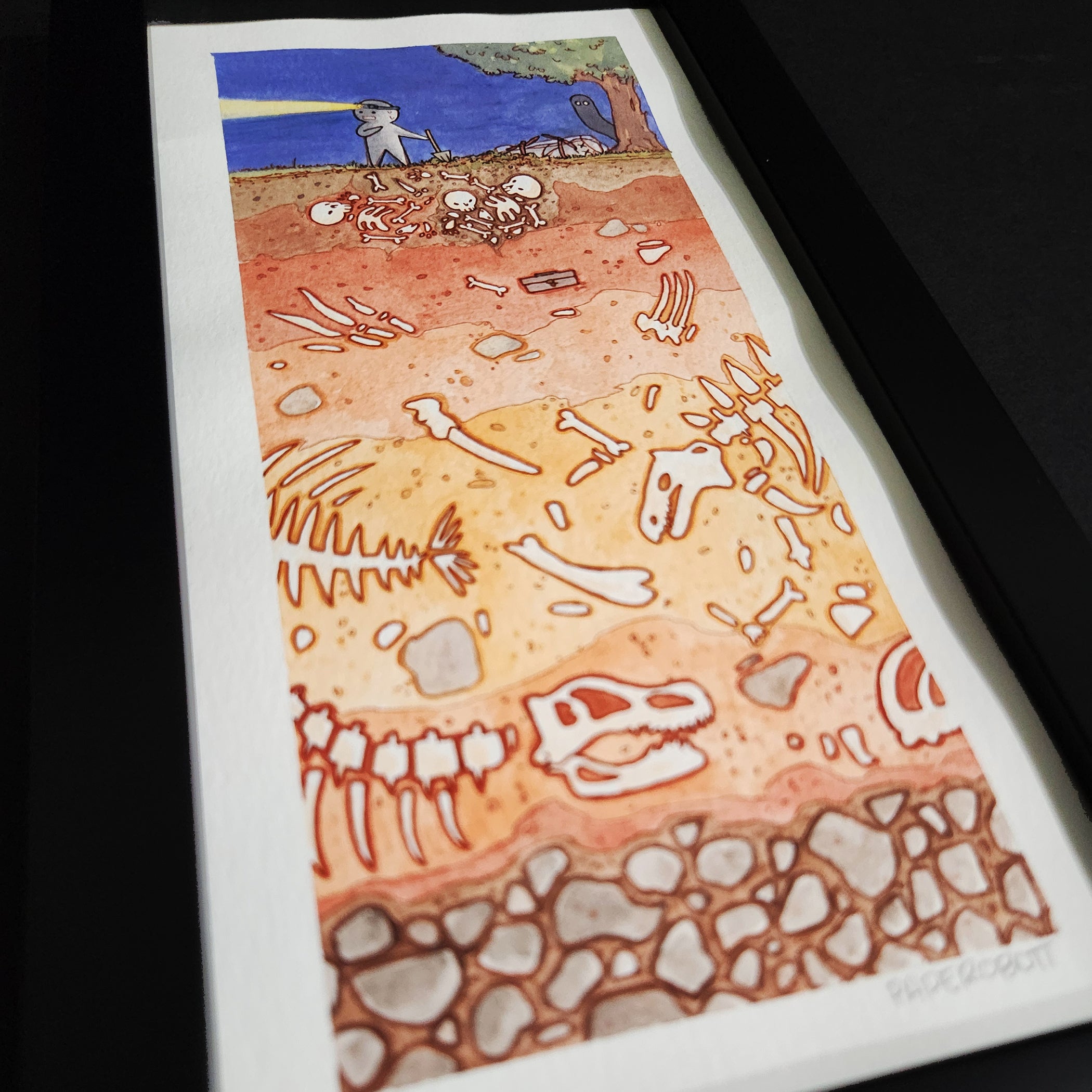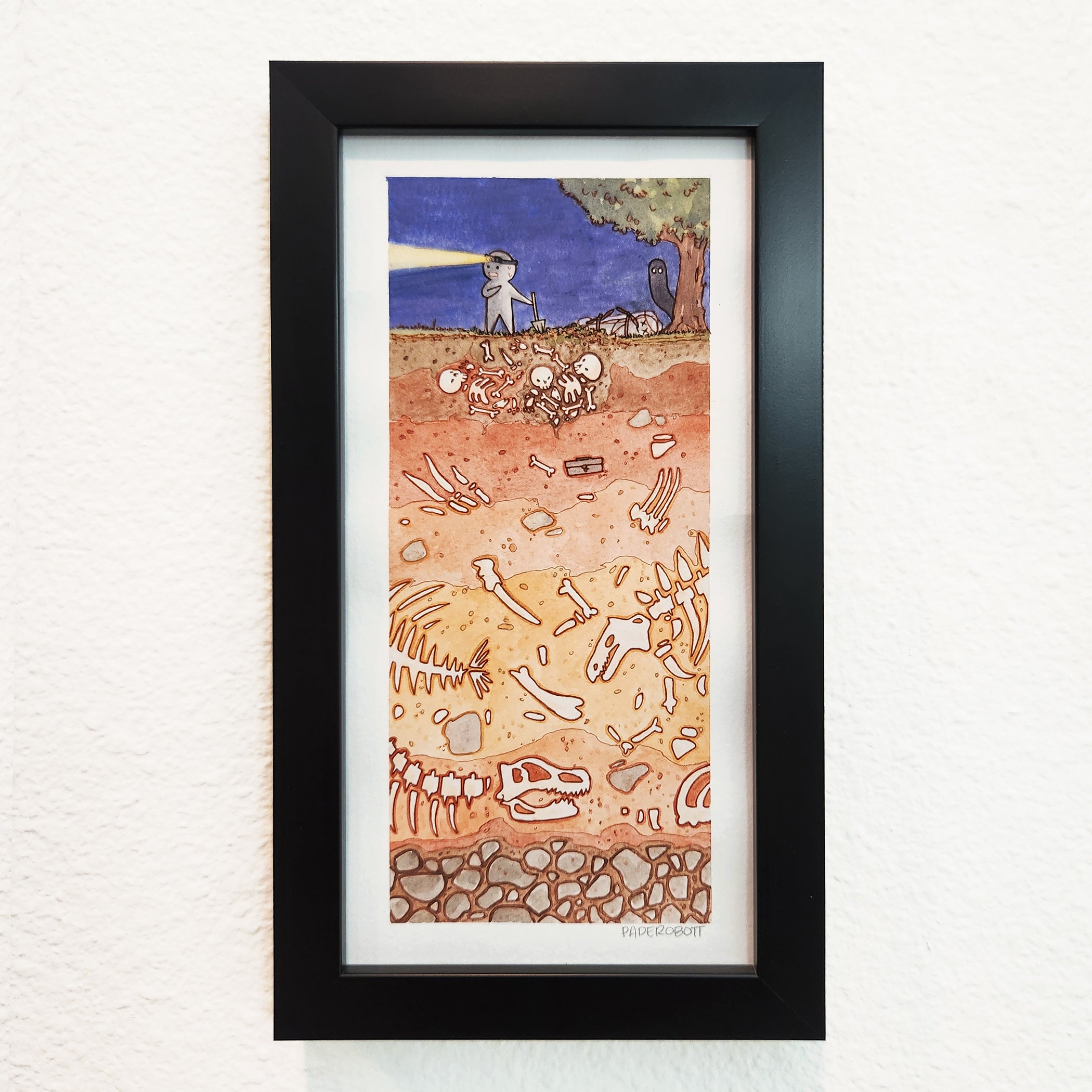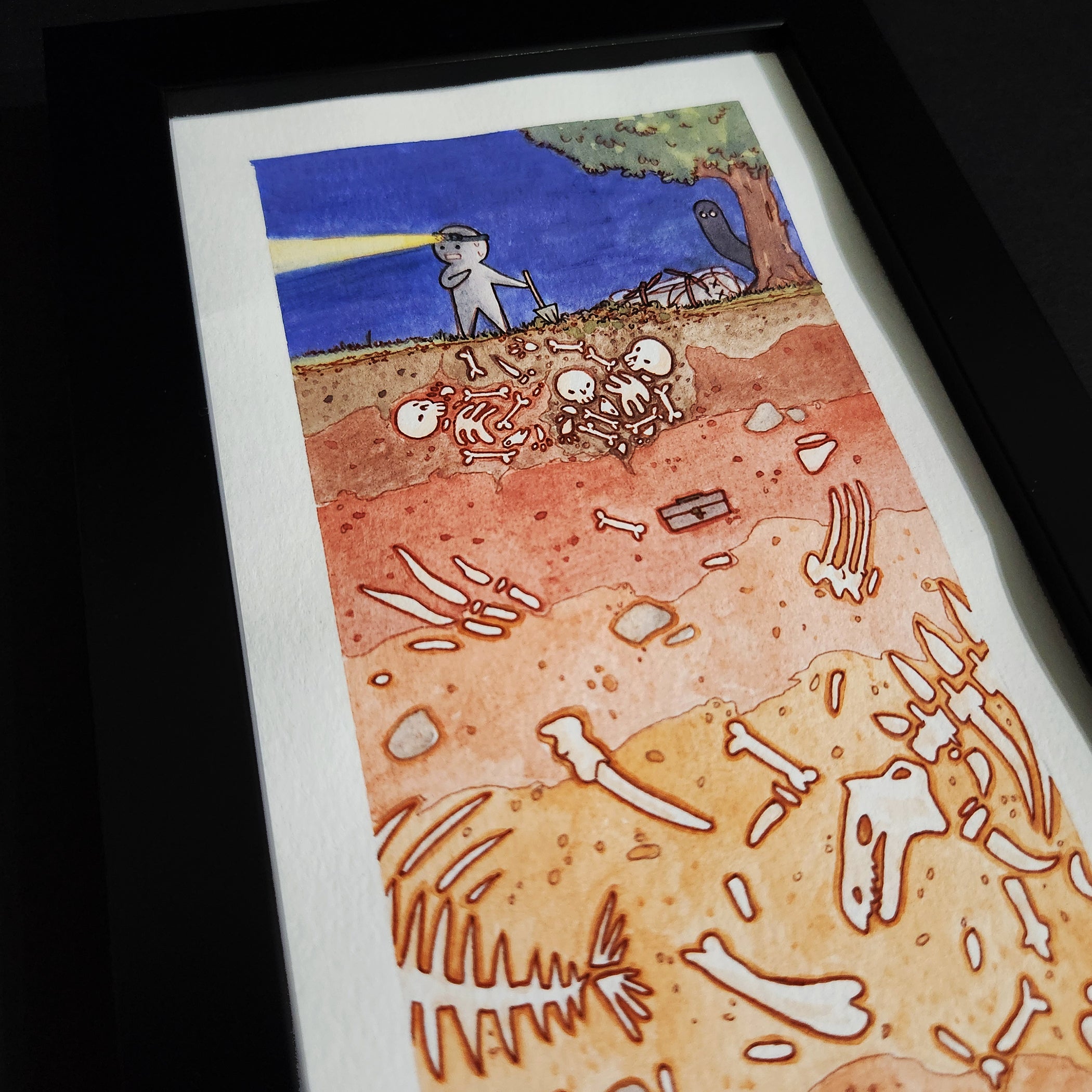 Artwork measures 5 x 10 inches, framed to 6 x 11 inches.