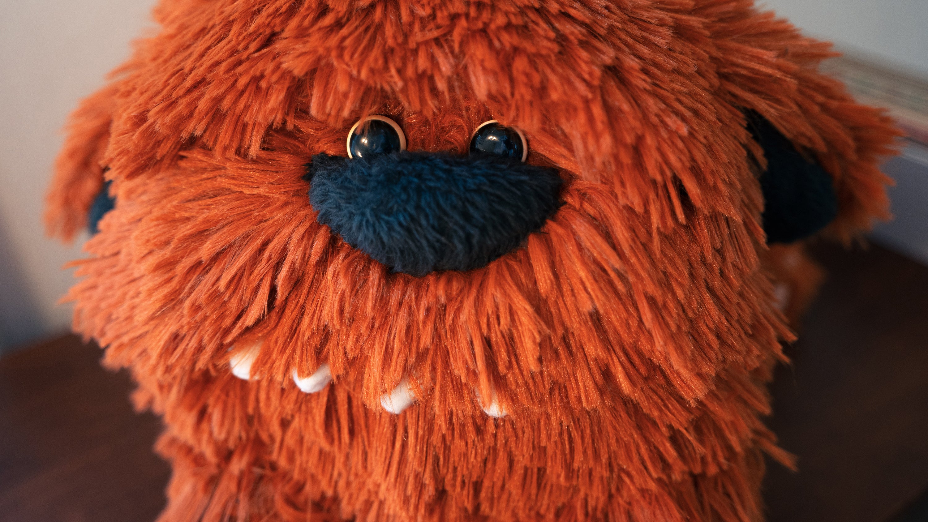 WuffWuff is hand sewn with super soft faux fur, felt, polyfil, vintage button eyes, and plastic pellets for a nice weighty huggable feel!