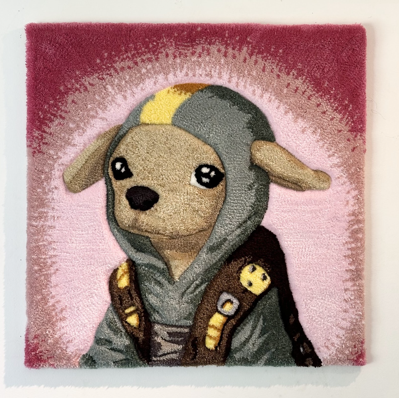 Tufted rug art with backing board.