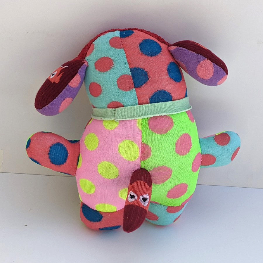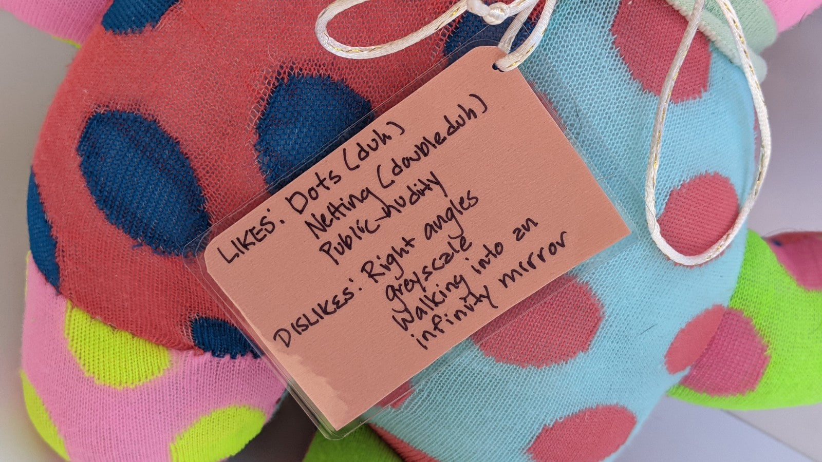 Socks, felt, embroidery thread, buttons, and polyester fiberfill.