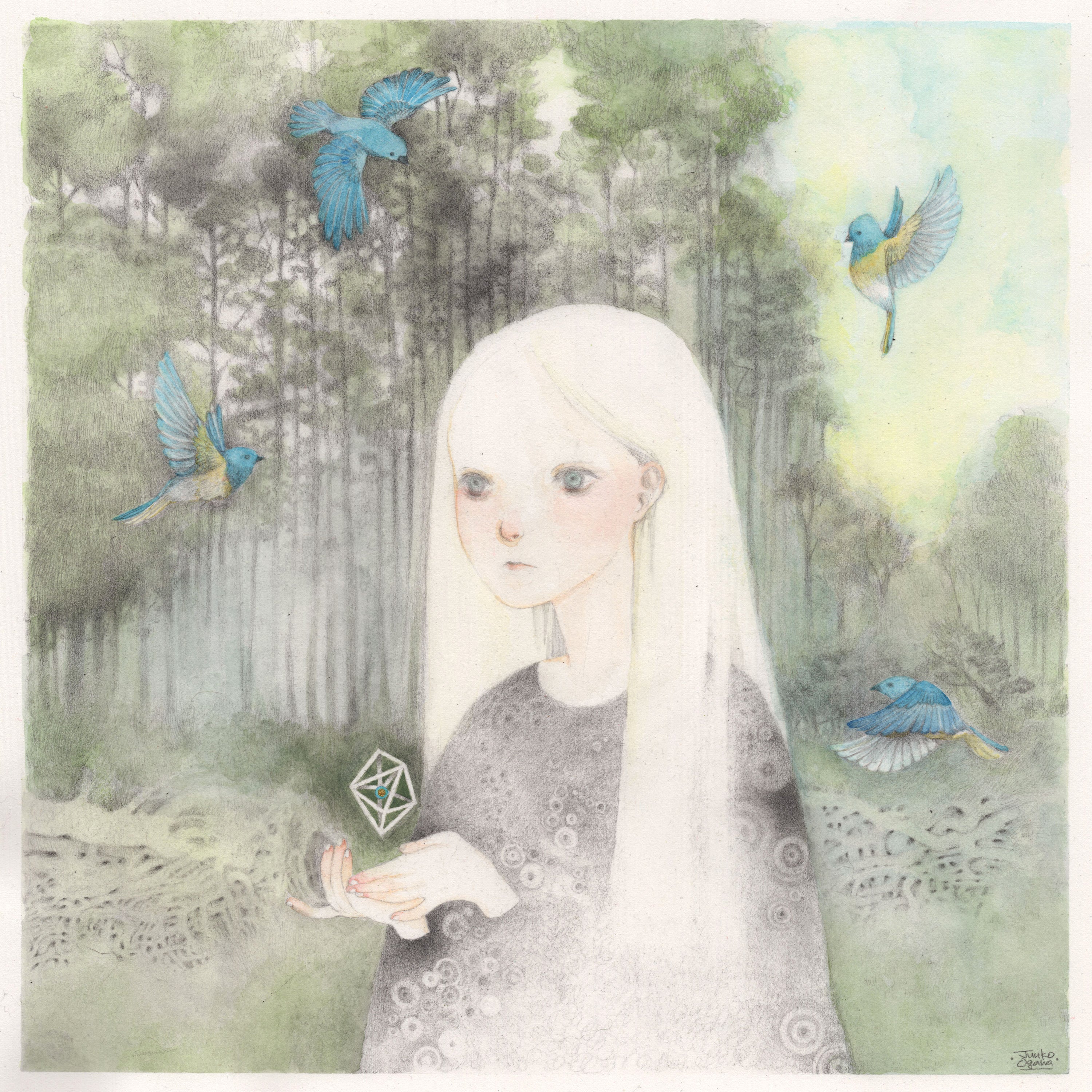 Artwork measures 12 x 12 inches, framed piece measures 16 x 16 inches.