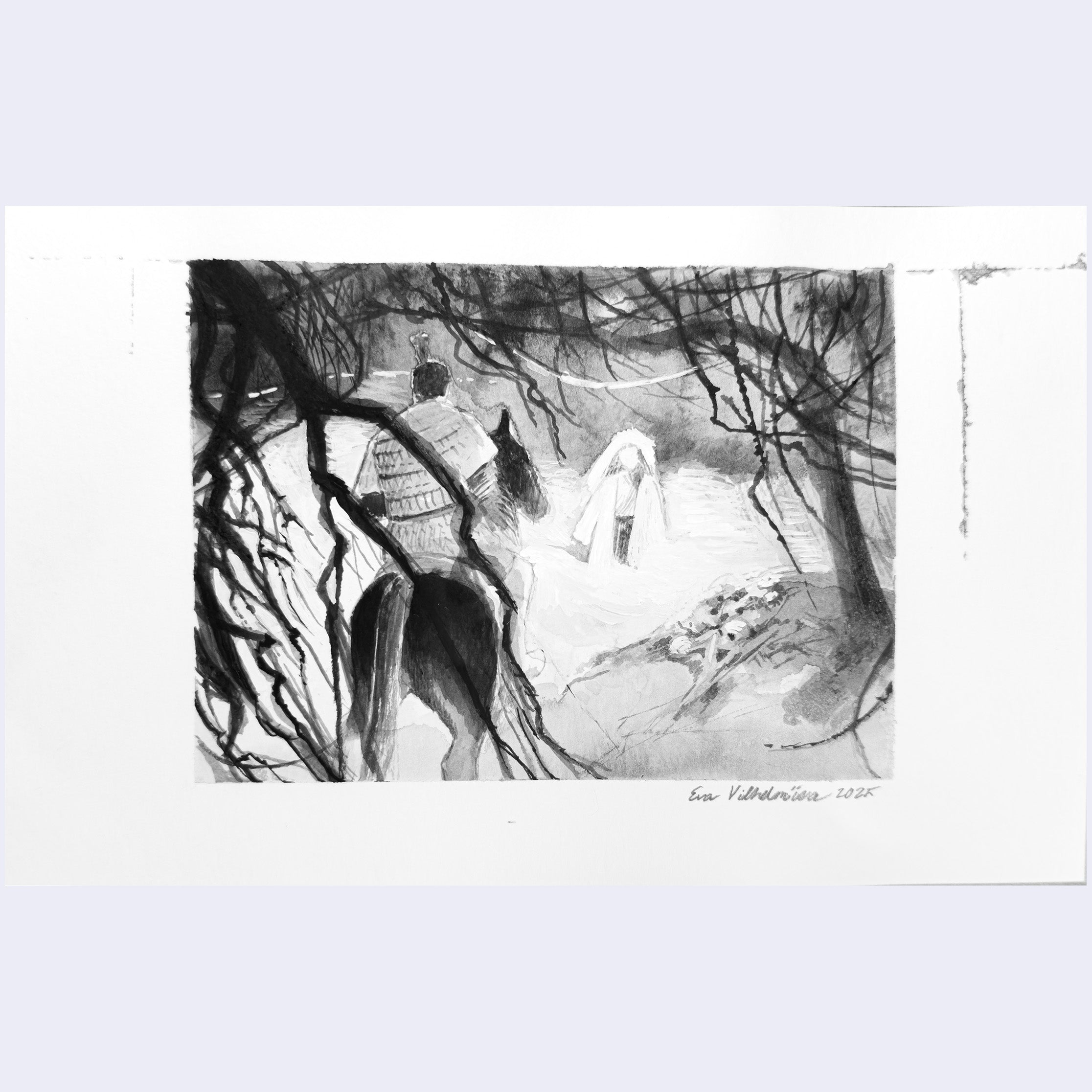Artwork measures 3.8 x 5 inches on 5 x 8 inch paper.