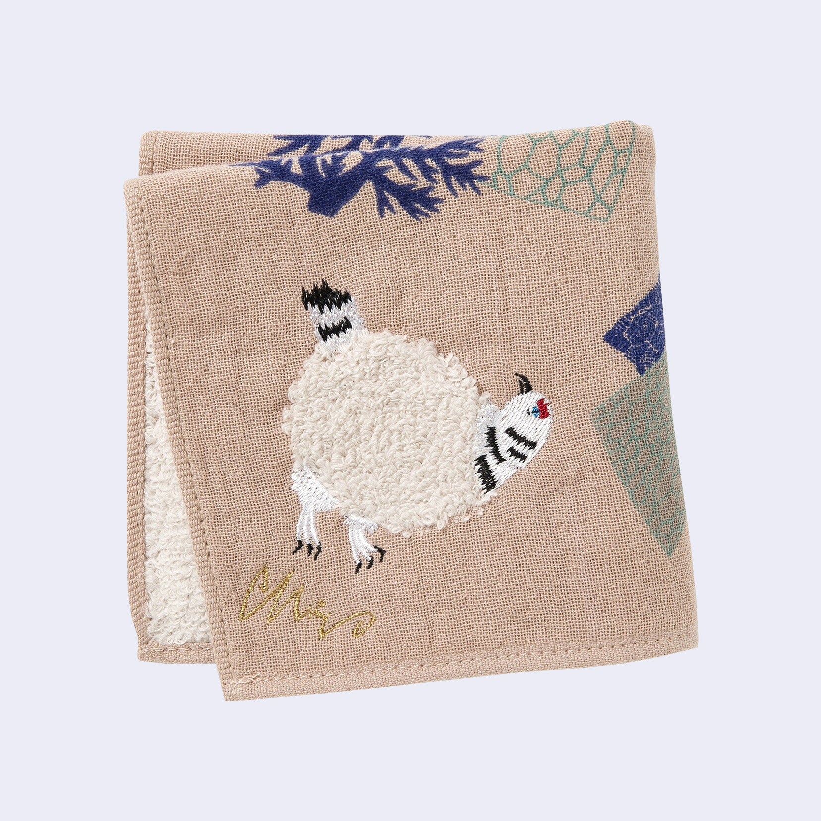 This lightweight towel can be used as such or as a handkerchief, folding up to be displayed in one's pocket! A collaboration between MoritaMiW, a poetry artist, and Kusubashi Monori, a Japanese towel maker. MiW's imagery brings each accessory to life and can even be hung up as decor.