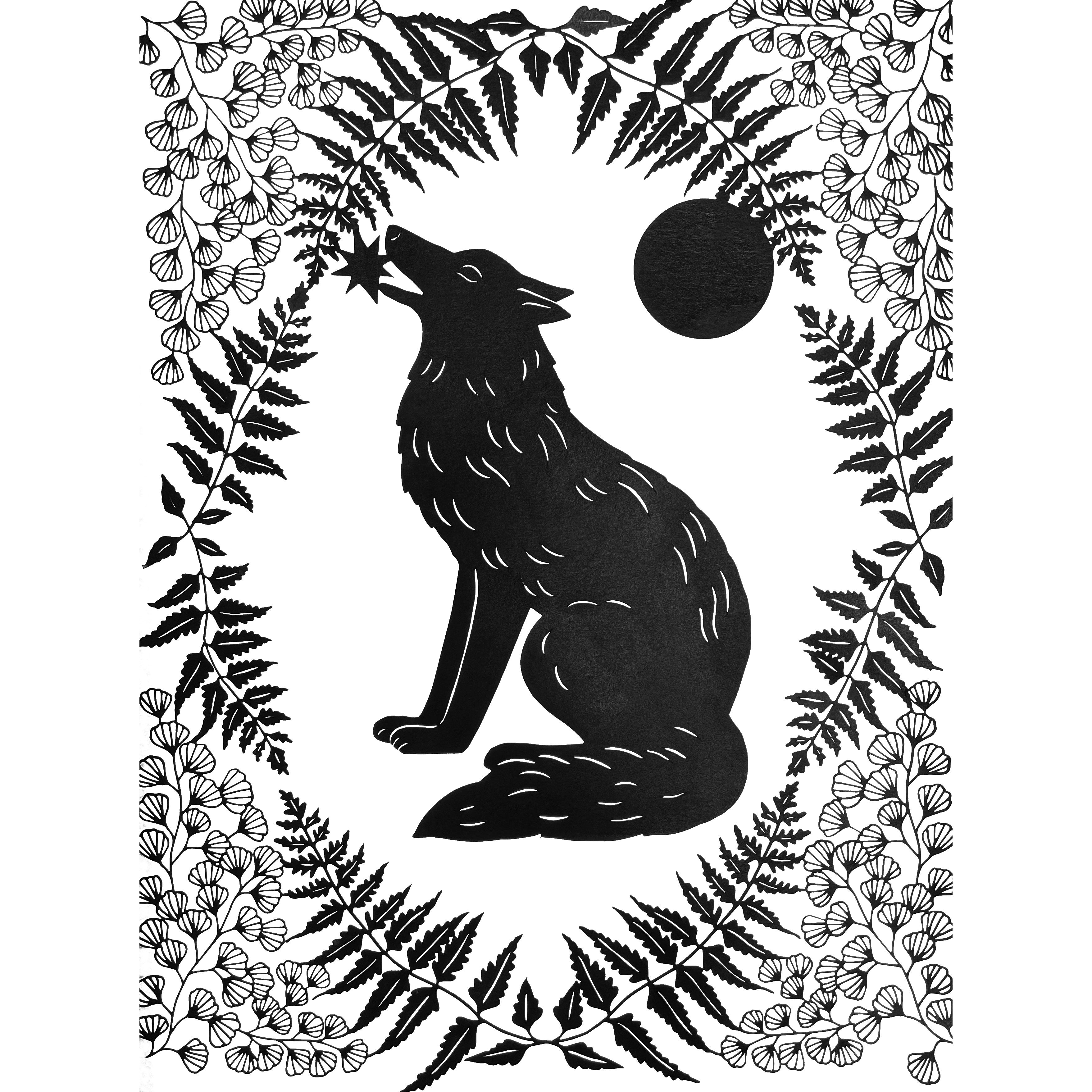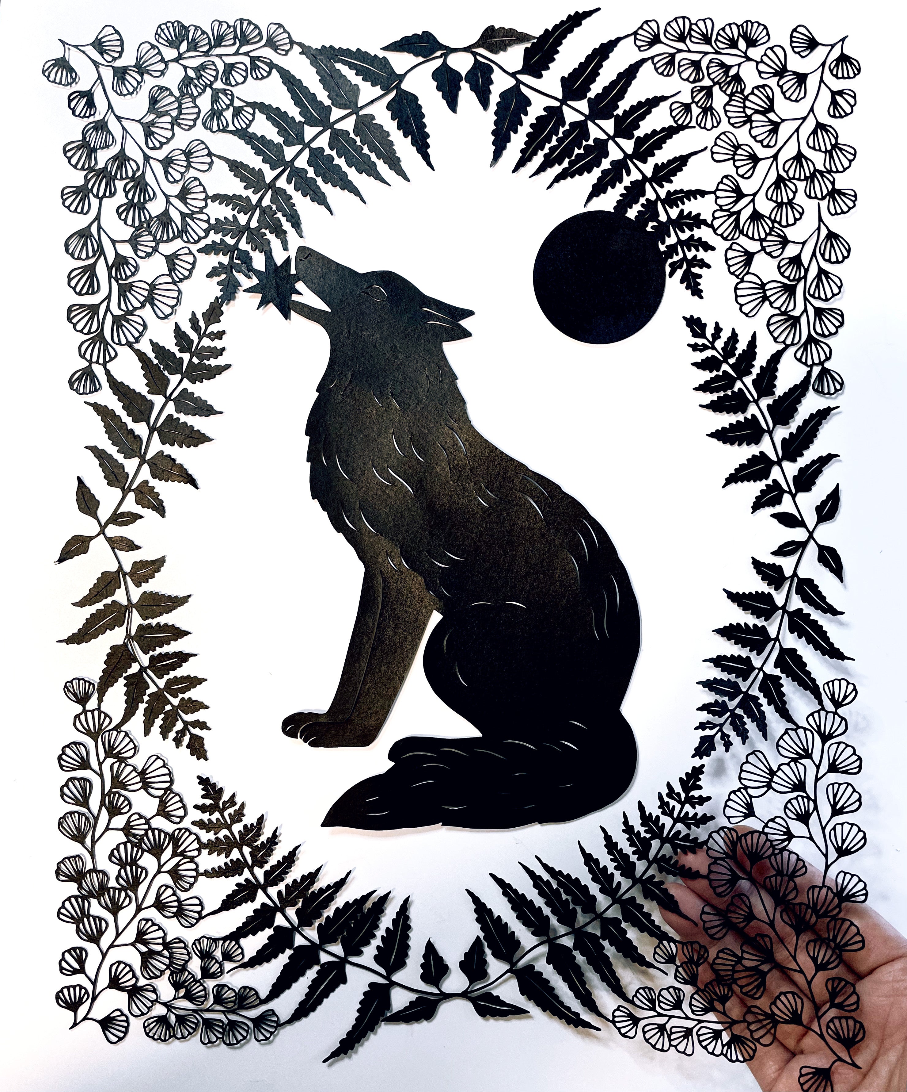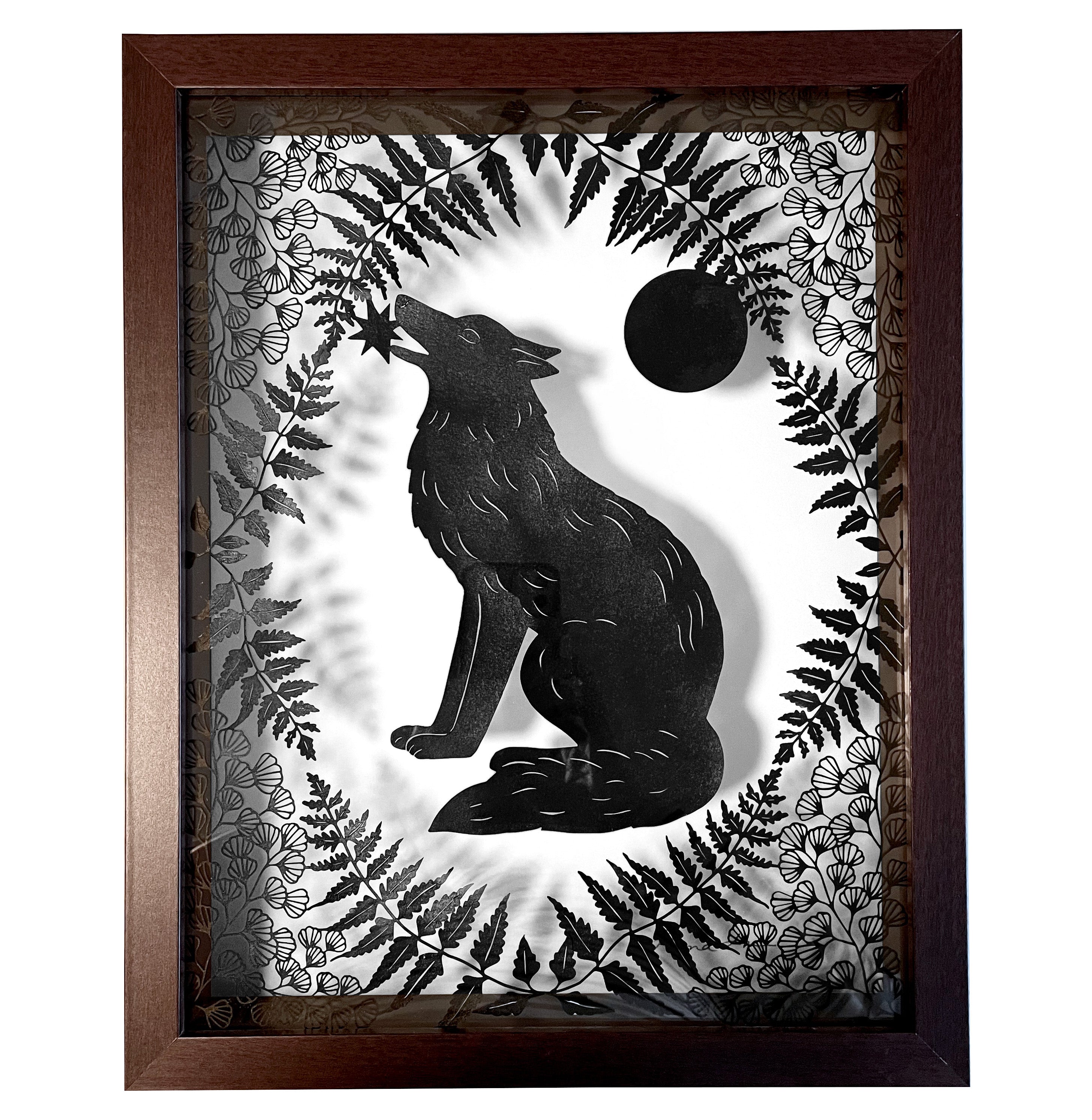 Hand cut paper and Sumi ink, in a shadowbox frame.