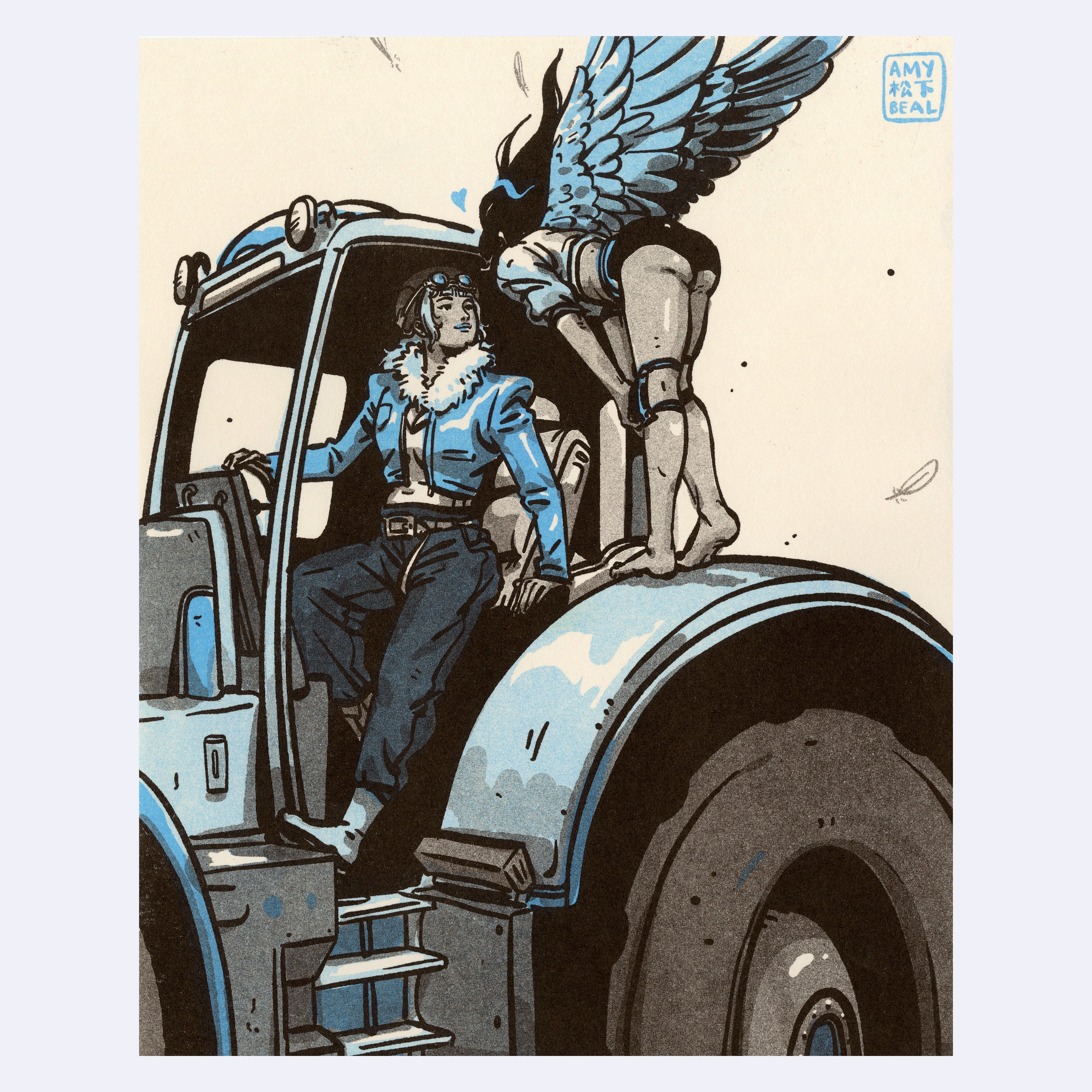 Amy Matsushita-Beal - "An Old Love Stops By" Risograph - Giant RISObots
