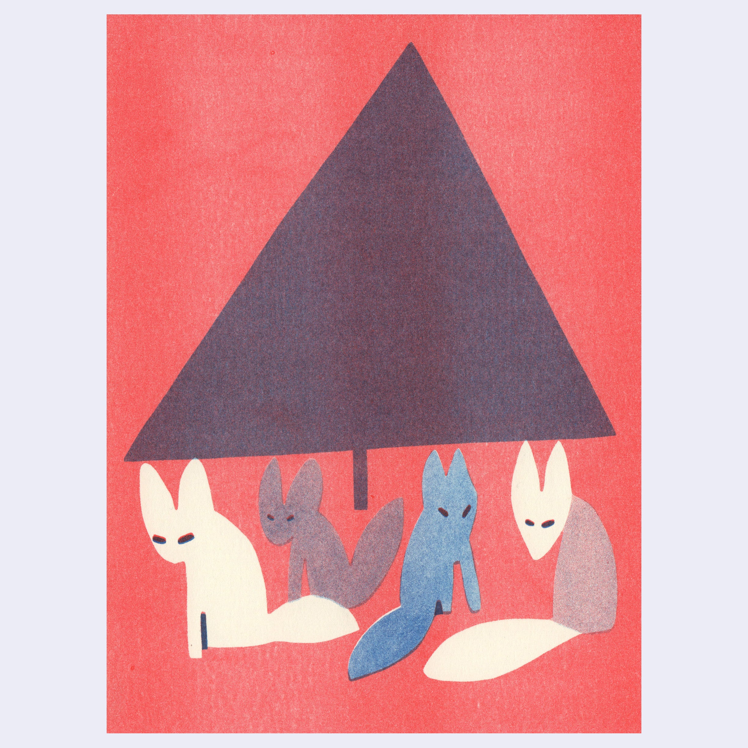 Arlin Ortiz - "Four Foxes Under a Tree" Risograph