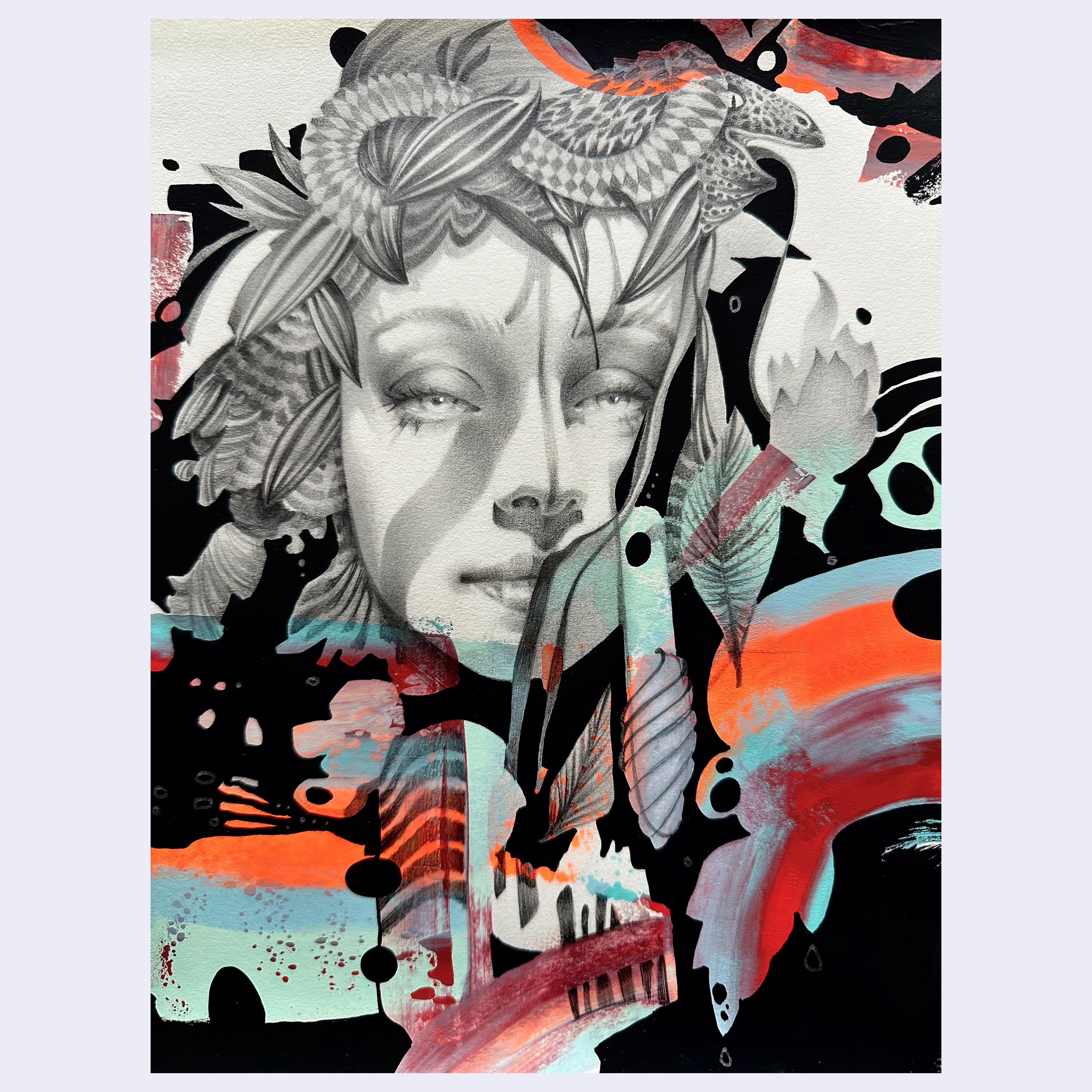 Graphite and mixed media on paper. Piece is unframed.