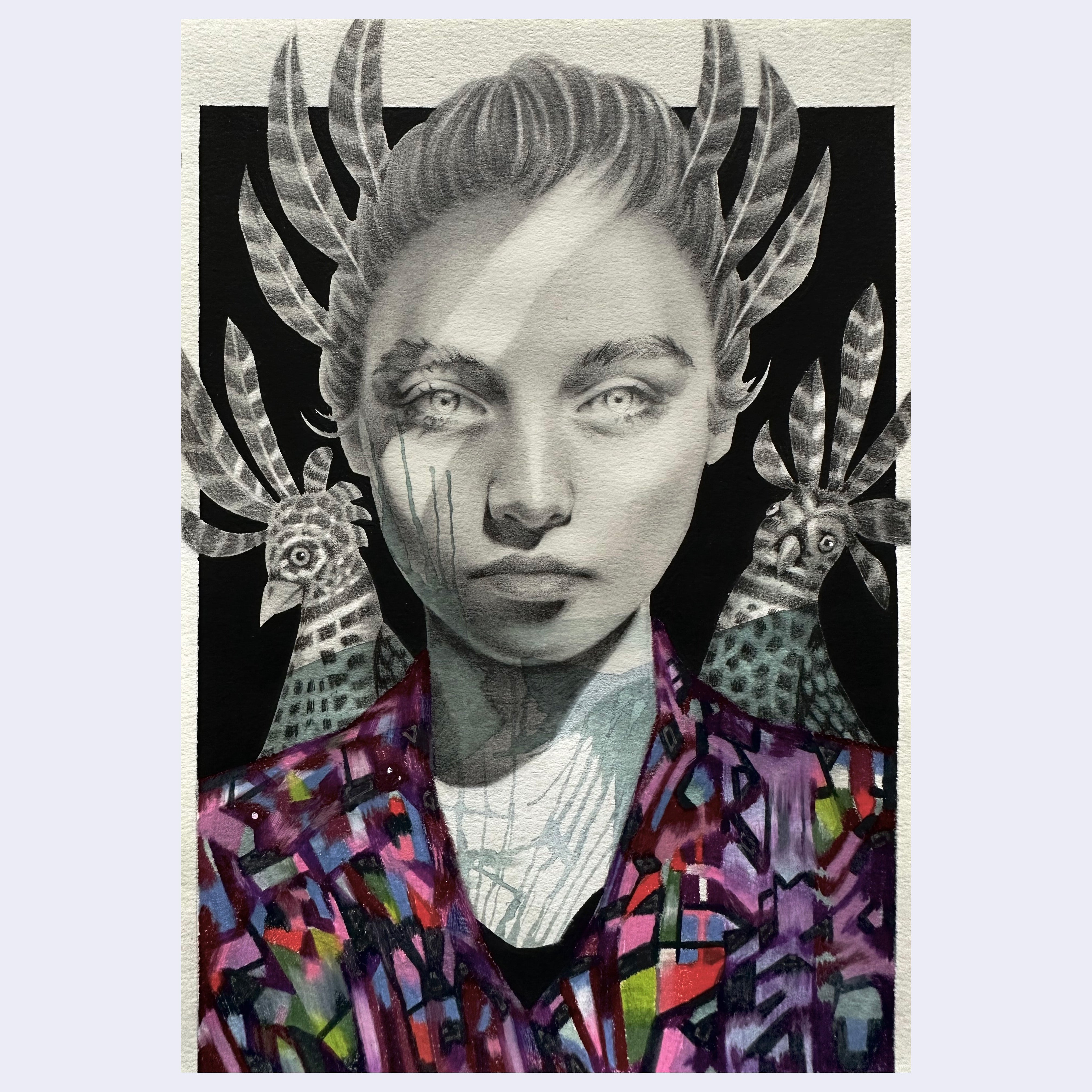 Graphite and mixed media on paper. Piece is unframed.