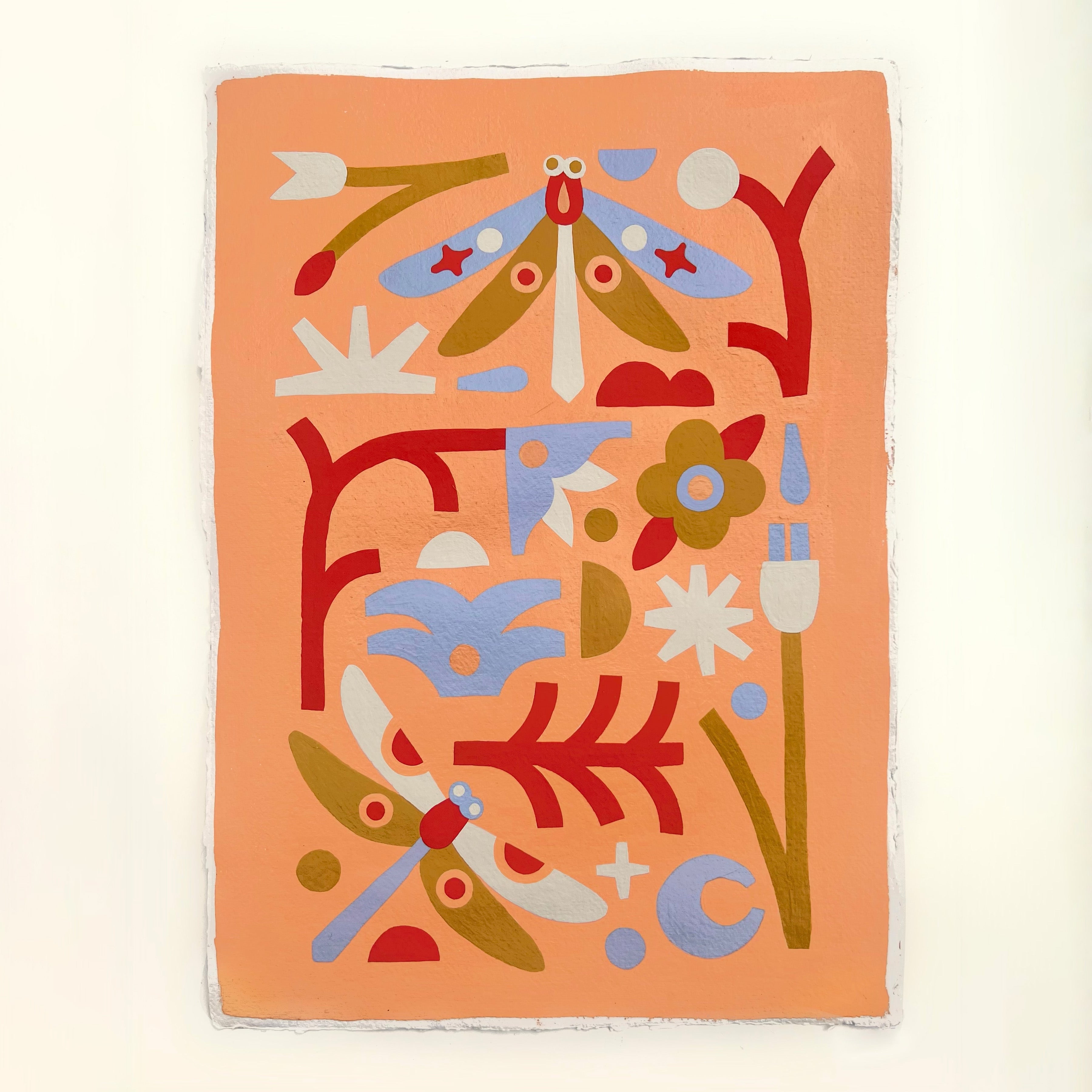 Acrylic goauche and latex paint on paper. Piece is unframed.