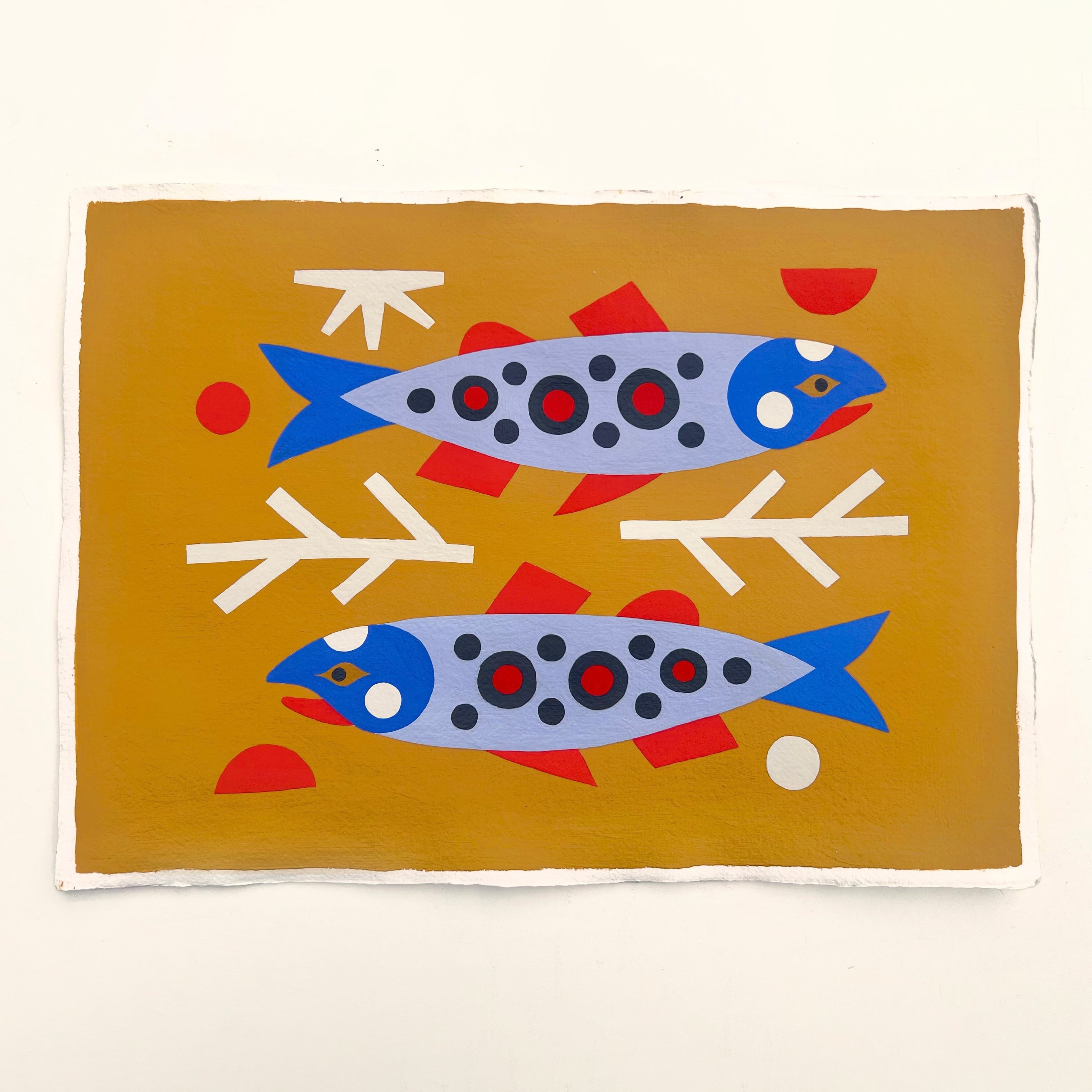 Acrylic goauche and latex paint on paper. Piece is unframed.