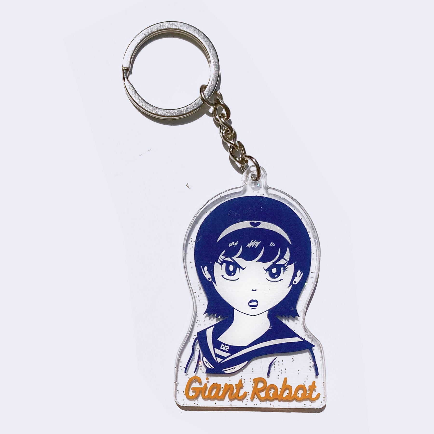 Giant Robot - Angry Manga Girl Glitter Charm Keychain