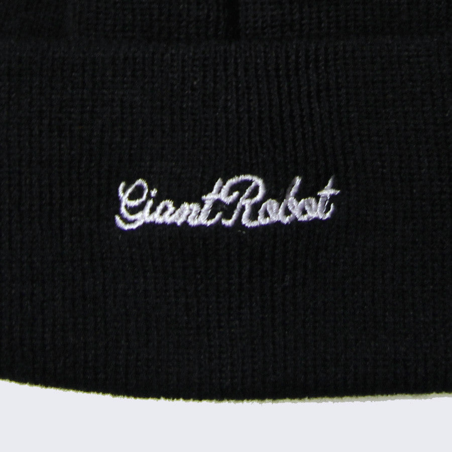 Giant Robot beanies! Keep your head warm and represent the Big Boss Robot. Embroidered robot logo on front. Giant Robot embroidered in cursive on the side.