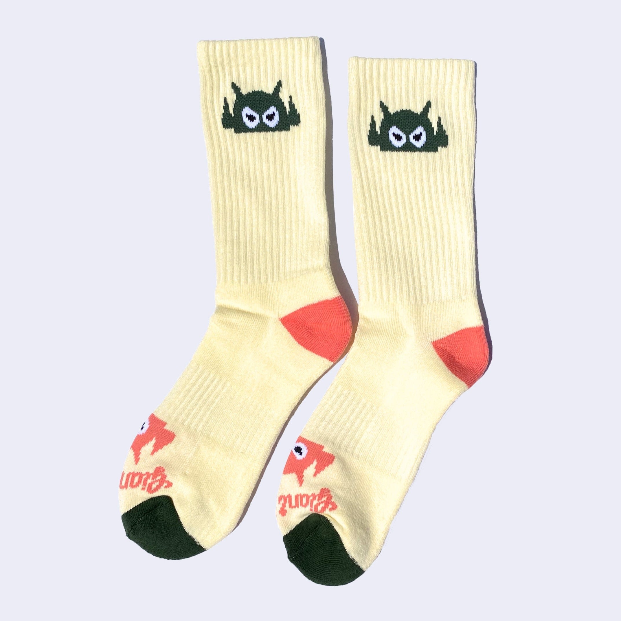 Giant Robot - Big Boss Robot Socks - Cream w/ Green & Salmon
