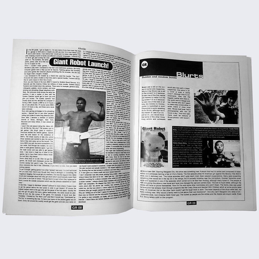 Giant Robot history reprinted! Before it was a magazine, Giant Robot was a zine. And Issue 3 is back 20 years later! Culture that is still relevant and interesting to this day. Re-discover it all! Articles on: