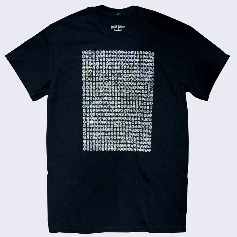 Mugs on a t-shirt! Giant Robot owner Eric Nakamura's imaginative, funny, cute and weird little faces have made it to a t-shirt. Find your favorite face and then draw your own!