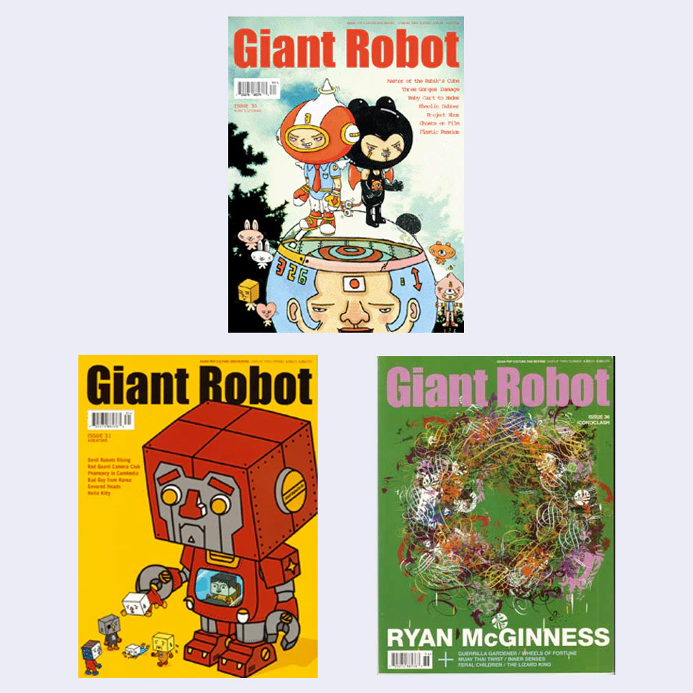 Whether you've read Giant Robot Magazine from the get go, or have always been trying to get your hands on some copies, this pack is perfect for the GR enthusiast. This pack includes issues 30, 31, and 36. Keep in mind we're nearing vintage age, so magazines will not always be in perfect conditions, though all the contents will be just as great as you remember.