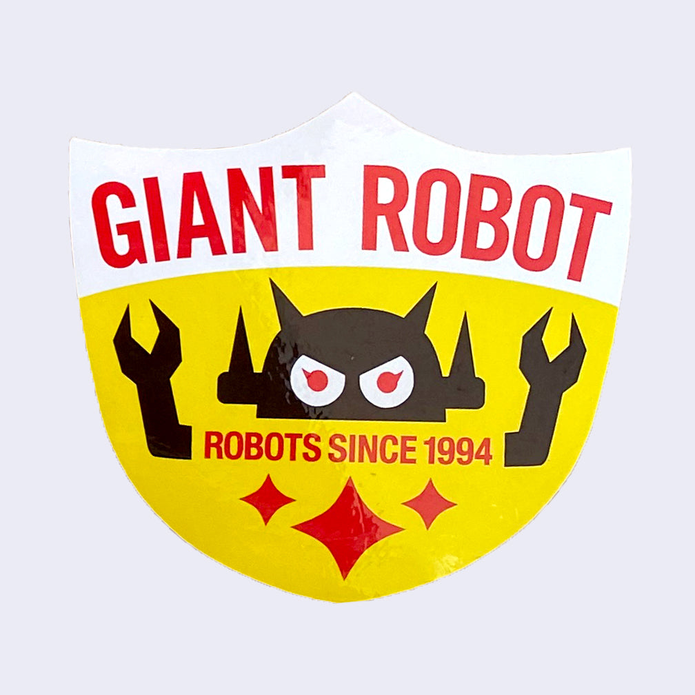For all your stick-able surfaces, our classic Big Boss in a cool shield shape. Rep Giant Robot on your laptop, water bottle, notebook, or anywhere else you please.