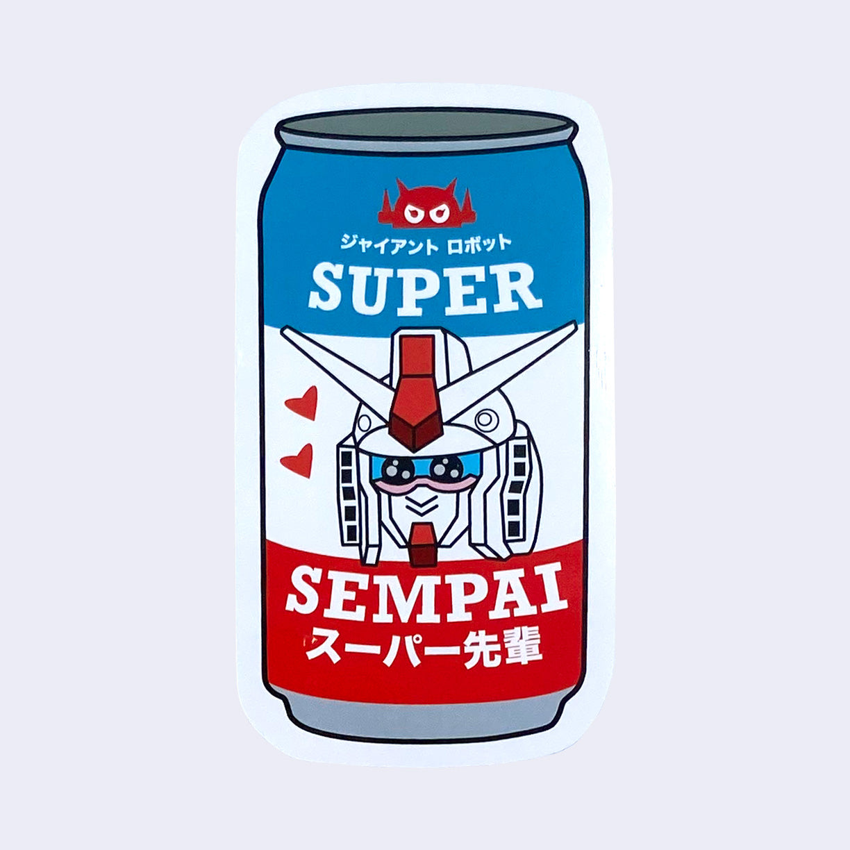 For all your stick-able surfaces, the infamous GR Kawaii Gundam as a delicious canned drink! Giant Robot on your laptop, water bottle, notebook, or anywhere else you please.