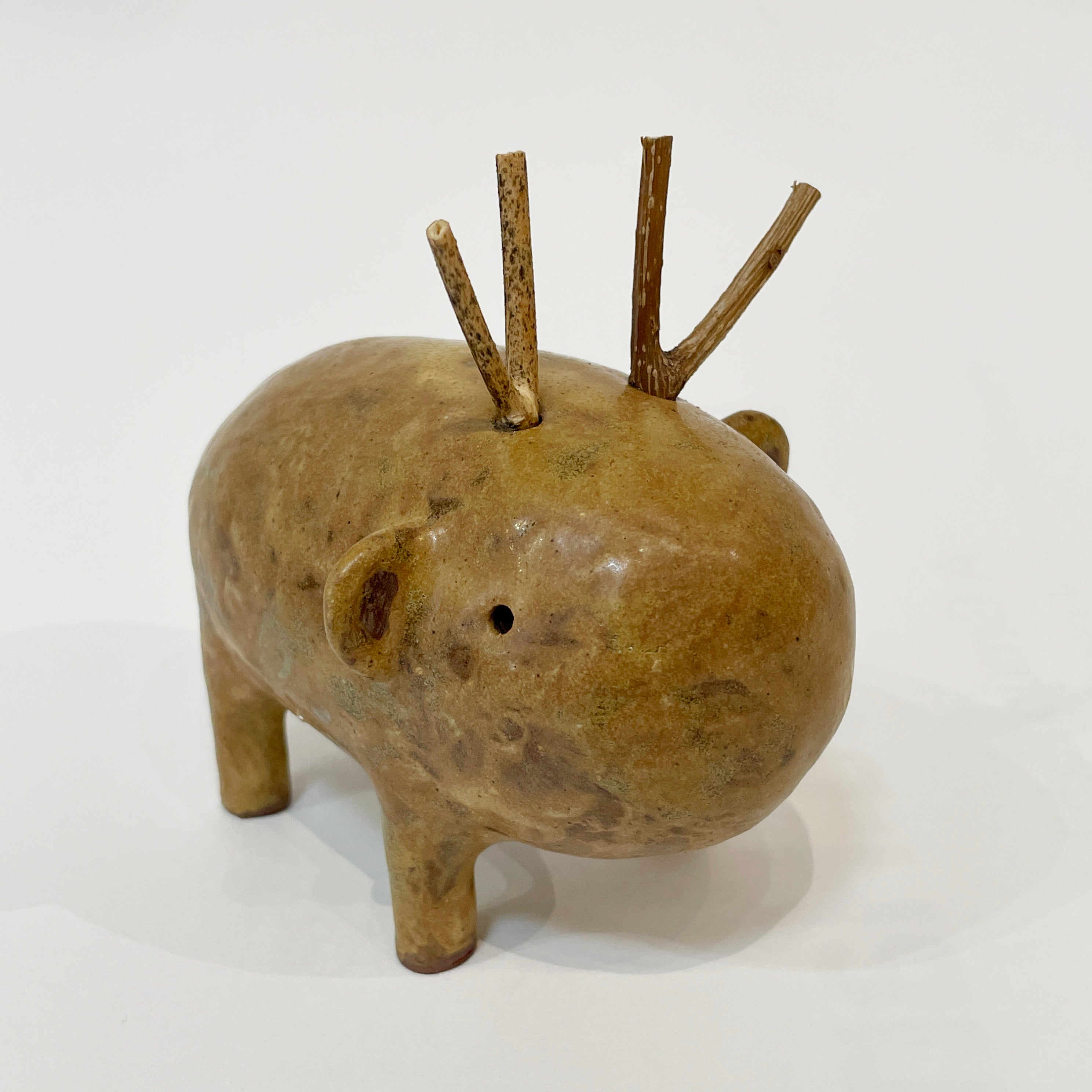 This piece is a handcrafted ceramic sculpture by artist Godeleine de Rosamel.