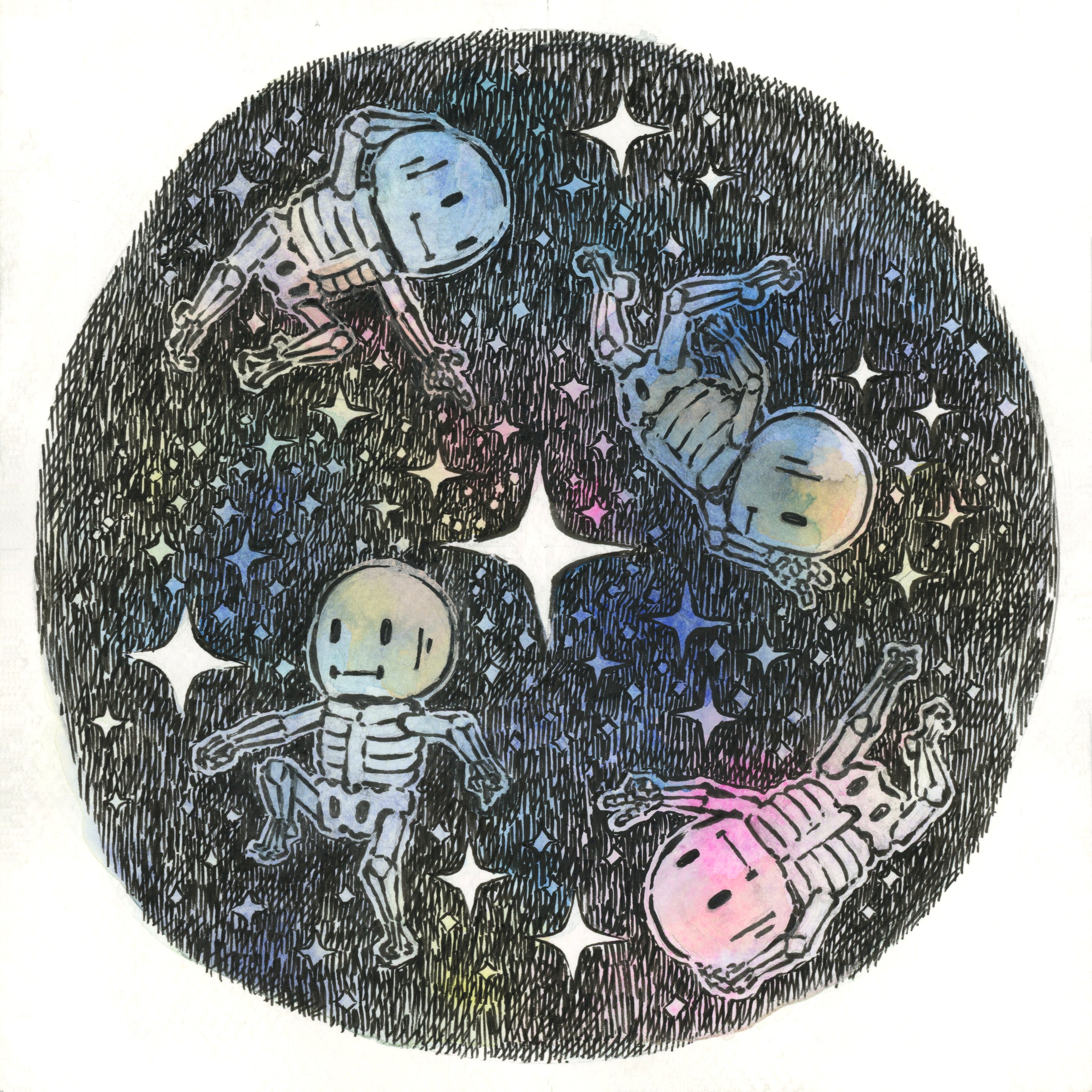 Ink, gouache and watercolor. Piece is framed.