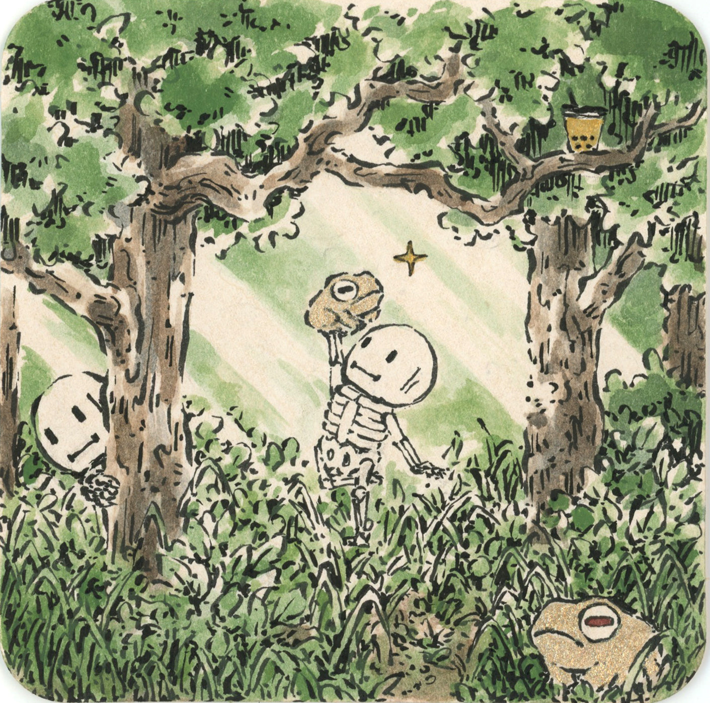 Ink and watercolor. Piece is unframed.