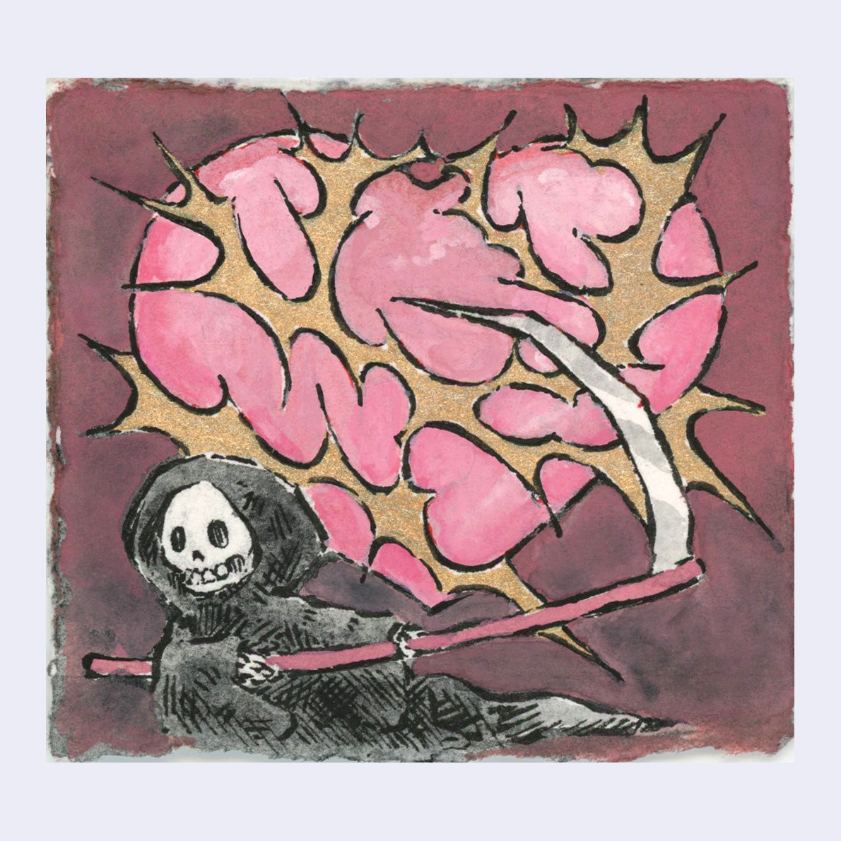 Ink, gouache and watercolor. Piece is unframed.