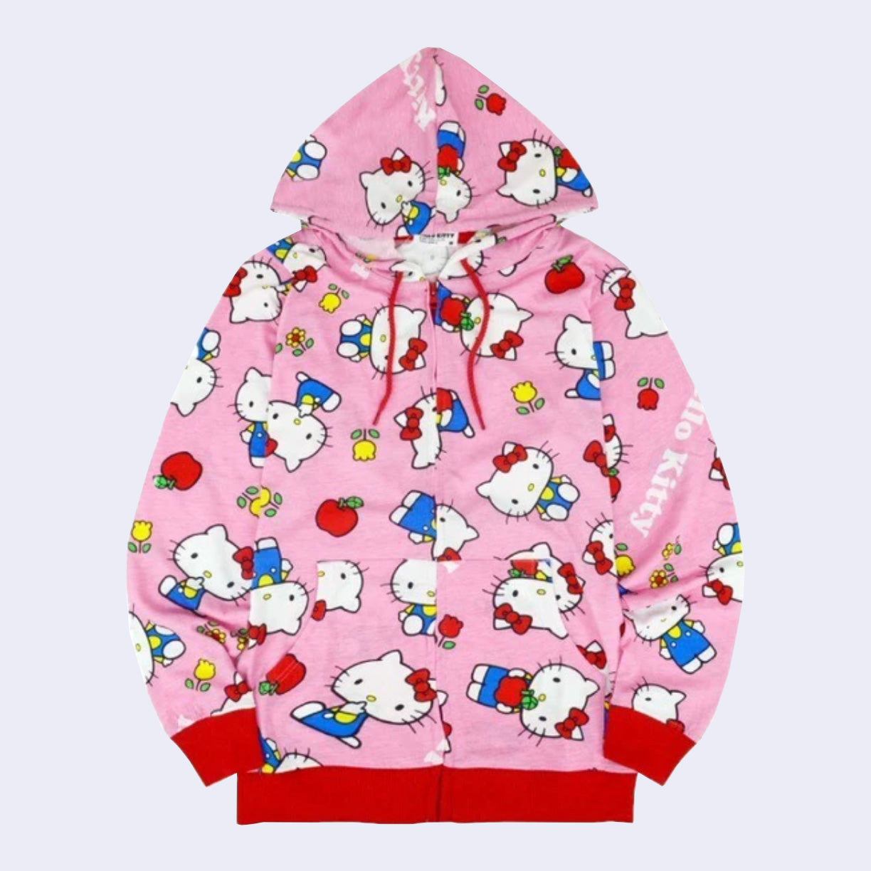 Hello Kitty All-Over-Pattern Zip-up Hoody Jacket (Pink)