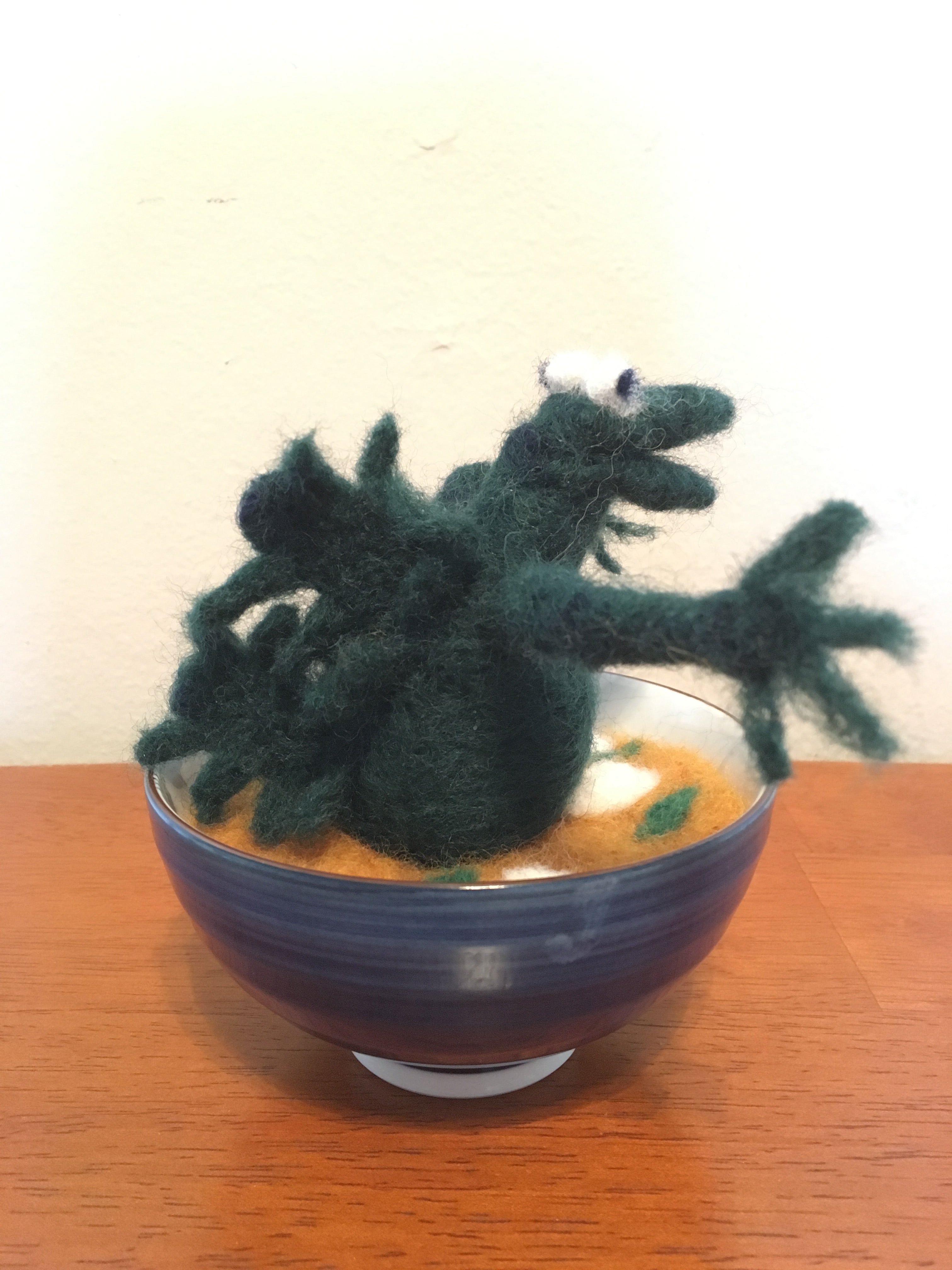 Felting in Miso Soup Bowl.